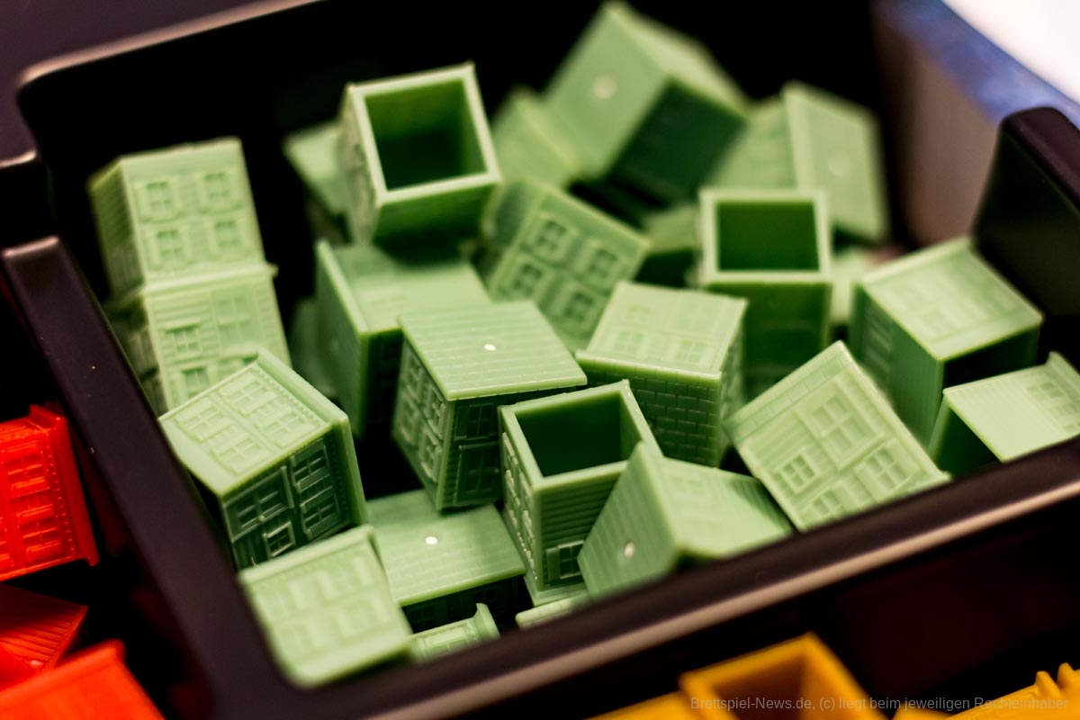 Wir mögen Spiele, bei denen am Ende der Partie sichtbar ist, was alles passiert ist, da sich das Spielfeld verändert hat, wie z. B. bei „Takenoko“. Hier konnte das Spiel voll bei uns Punkten, denn am Ende einer Partie „Embarcadero“ können wir unser Hafenviertel in voller Pracht begutachten. Allerdings nur, wenn wir auf der richtigen Seite des Spielbretts sitzen. Um einen guten Überblick über unsere Bauten und die der Gegner zu behalten, müssen wir unter Umständen immer mal wieder aufstehen. Hierbei ist Vorsicht geboten. Stößt man zu sehr an den Tisch, kann unsere Hafenstadt zusammenfallen, da die einzelnen Strukturen in der Höhe sehr wackelig werden.