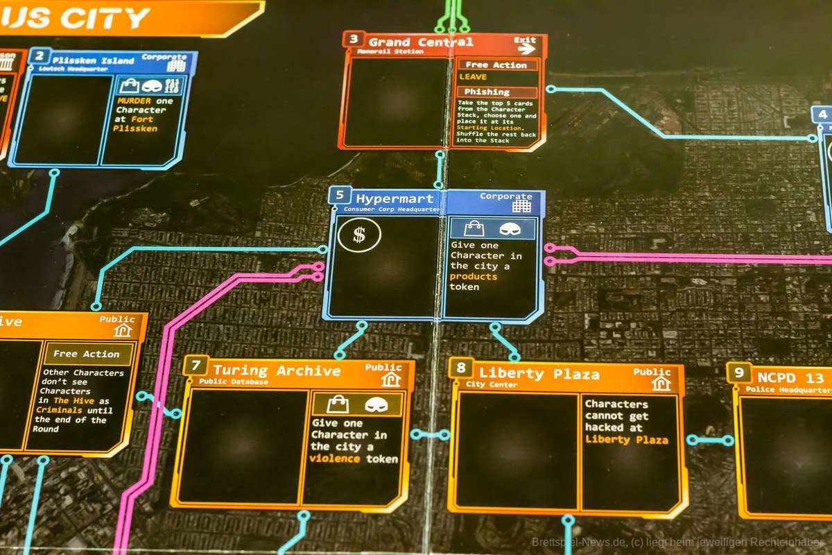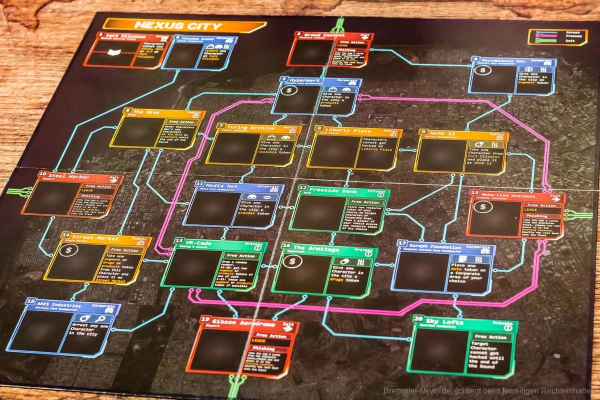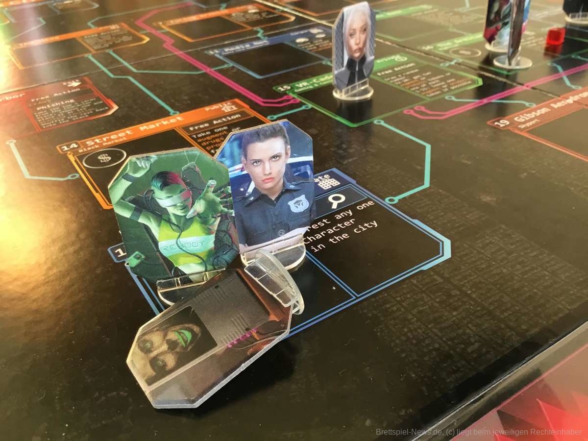 Nexus City stellt sich für Spielerinnen und Spieler in Verkörperung eines Megakonzerns abstrakt dar. Die Bewohner der Stadt sind Ameisen im profitgetriebenen Fleischwolf einer seelenlosen gierigen Wirtschaft. Moralische Fragen stellen sich gar nicht erst. So ist die Kernmechanik des Gehirnhackings kein Problem. Es ist nichts Persönliches, es geht nur ums Geschäft. Wie so häufig ist dabei das Kleingedruckte von entscheidender Bedeutung. Und Kleingedrucktes gibt es leider zuhauf. Denn schließlich gibt es bis zu 44 individuelle Charaktere im Spiel. Deren einzigartige Routinen müssen laufend nachgelesen werden. Das komplexe Geflecht aus „Wenn“, „Dann“ und „Sonst“ kann sich niemand merken. Eine kleine Übersicht wie in „Kemet“ könnte besonders die Spielerinnen und Spieler entlasten, die noch keine kybernetisch verbesserten Augen besitzen. Im bisherigen Zustand ist „Axon Protocol“ für Farbenblinde nicht geeignet. Aber in der Kickstarterkampagne kann sich noch einiges ändern.