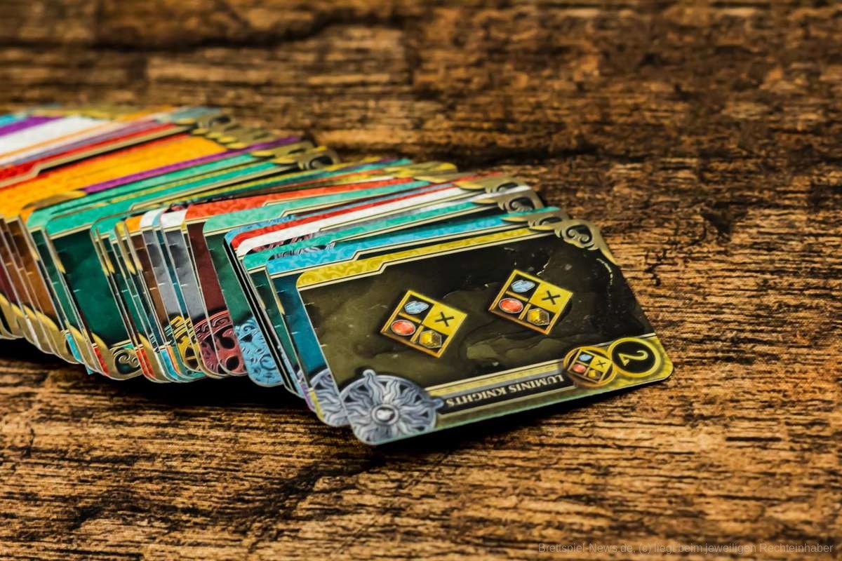Das Material ist für einen Prototyp bereits hochwertig produziert. Die Gestaltung der Karten gefällt mir unglaublich gut, da jede Karte ein eigenes individuelles Artwork besitzt. Vor allem aber konnten mich die Miniaturen der Städte begeistern, da sie mit viel Liebe und mit wahnsinnig vielen Details modelliert worden sind. Ich kenne mich leider nicht so gut damit aus, aber ich würde sagen, dass die Minis aus Resin gefertigt wurden. Ich nehme an, dass die Entwickler für das finale Produkt kostengünstigere Miniaturen verwenden werden. Bedauerlicherweise sind keine individuellen Miniaturen für die Kerzen vorhanden, allerdings wären diese auch schwer umsetzbar und würden das Spiel vermutlich unbezahlbar machen.