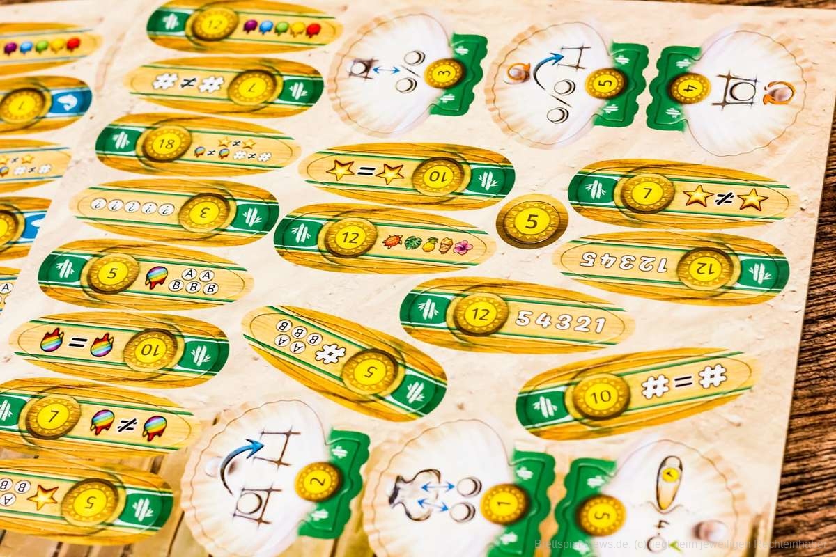 Durch die Joker soll das Ganze etwas vereinfacht werden, sodass Plättchen ausgetauscht oder sogar Aufgaben wieder aus den Reihen genommen werden können. An der Stelle muss ich leider sagen, dass die Regeln zwar einfach und schnell zu verstehen sind, aber nicht auf jede Situation eine Antwort im Regelheft steht. Ein Blick ins Internet hat uns weitergeholfen, da bei mehreren Personen bereits an ähnlichen Stellen Fragen aufgekommen sind.