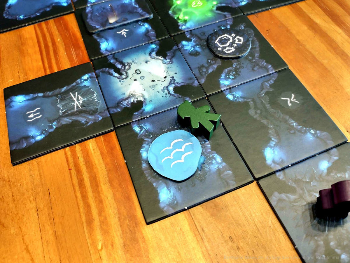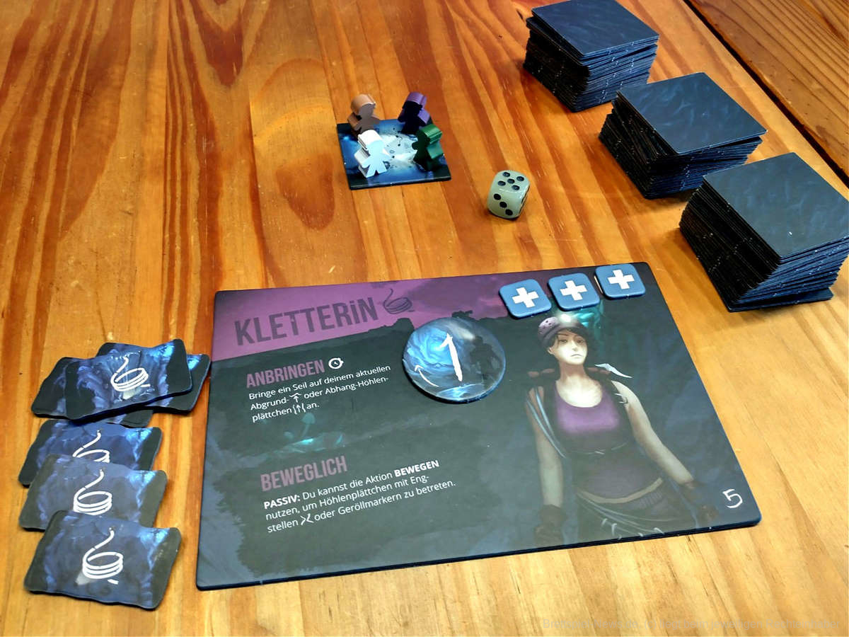 Das Spiel gefällt im Kern außerordentlich gut. Alles wirkt sehr übersichtlich und durchdacht, die eigenen Züge sind kurz und knackig. Die kooperative Komponente glänzt durch verschieden ausgedachte und diskutierte Vorgehensweisen. Eine ganze Reihe kleinerer Kritikpunkte sorgte dann allerdings dafür, dass der Hunger nach weiteren Partien in unserer Runde schnell abgeebbt war. Einer der Hauptgründe ist der Schwierigkeitsgrad - selbst auf „Normal“ ist das Spiel gefühlt kaum schaffbar. Nach mehreren Runden in verschiedenen Besetzungen ist dabei vor allem klar geworden: es braucht eine gute Portion Glück um zu gewinnen und ein gutes Gefühl für den Rundenablauf. Denn Glück spielt eine wesentliche Rolle wenn wir neue Plättchen aufdecken, den Würfel werfen um eine Probe auszuführen oder eine neue Ereigniskarte aufdecken. Die Strafen, die wir erdulden müssen wenn mal etwas schief läuft, sind kernig und enden nicht selten damit, dass einer unserer Forscher bewusstlos am Boden liegt. Solange das so ist, muss diese Figur auf Hilfe warten bis sie wieder am Spiel teilnehmen kann. Es macht daher Sinn, mich als Startspieler einer Spielrunde der größten Gefahr zu stellen, denn nachfolgende Figuren können mir in der laufenden Runde so noch wieder aufhelfen. Geht das nicht, bin ich in der darauffolgenden Runde zumindest nicht der letzte Spieler. Wenn jedoch der letzte Spieler einer Runde ausfällt, heißt das unweigerlich auch, dass er als neuer Startspieler der Folgerunde eine ganze Runde aussetzen muss. Spätestens wenn zwei Höhlenforscher am Boden liegen, wird es richtig unangenehm und wir verplempern Zug um Zug damit, die Einsatzbereitschaft der Gruppe wieder herzustellen, statt weiter Plättchen aufzudecken.