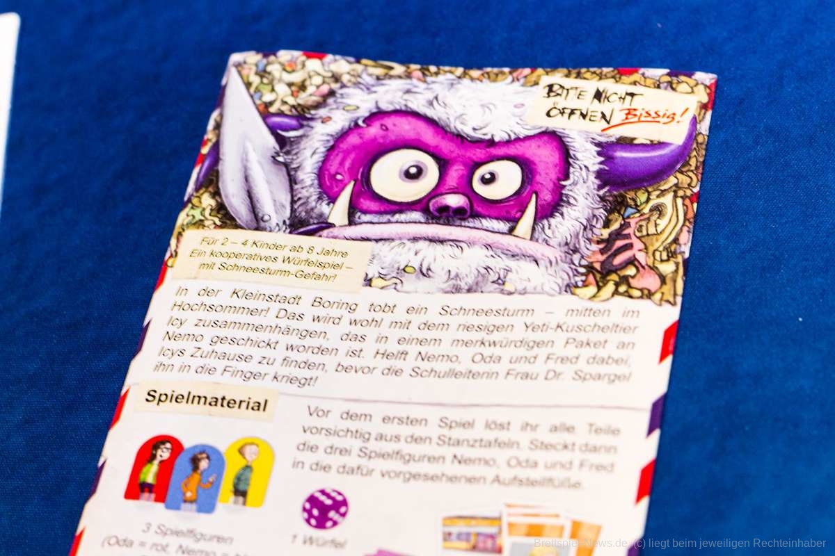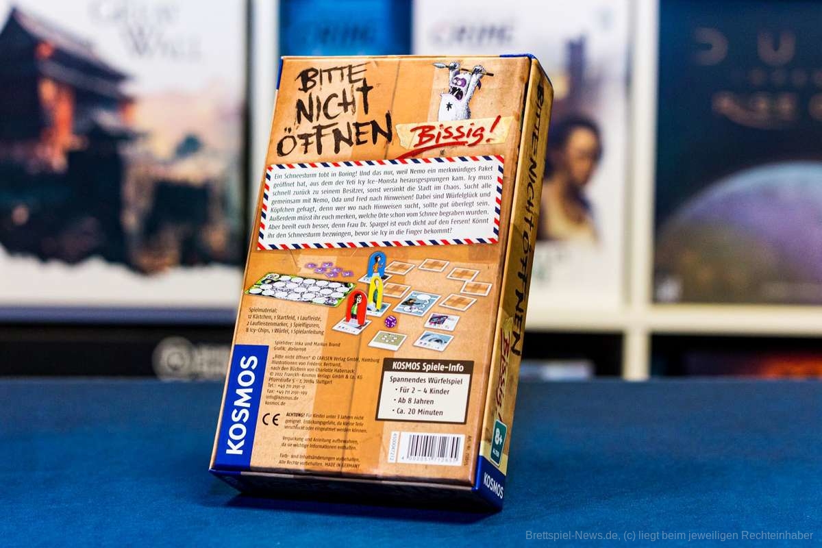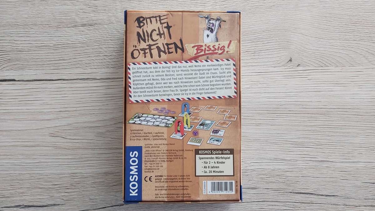 Dieses Spiel hat mich etwas verwundert zurückgelassen. Da wäre zunächst einmal der Titel. Dieser hat aus meiner Sicht überhaupt nichts mit dem Spiel an sich zu tun. Der Hintergrund und die Figuren sind aus der Kinderbuchreihe „Bitte nicht öffnen“ entnommen. Da ich die Geschichten jedoch nicht kenne, fehlt mir hier natürlich der Bezug.