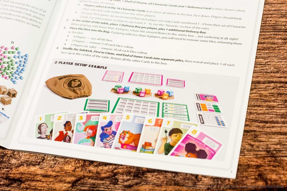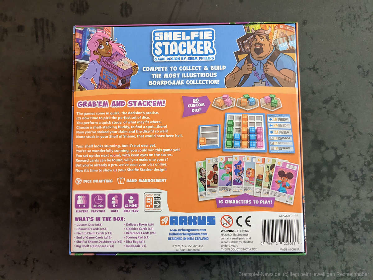 Ein Brettspiel über uns und unseren immerwährenden Kampf mit dem Platz im Spieleregal. "Shelfie Stacker“ weiß von Anfang an mit seinem Artwork und dem Humor zu überzeugen. Es gibt eine Menge an Charakterkarten und wir haben uns in nicht wenigen wiedererkannt, was für einiges Gelächter am Tisch gesorgt hat. Jeder Brettspielfan wird sich hier auf die eine oder andere Art und Weise wiederfinden und besonders gut hat uns die Umsetzung der Fähigkeiten gefallen, die sehr passend zum jeweiligen Stereotyp ausgewählt wurden. Die Spielschachtel ist kompakt, dafür aber prall gefüllt mit hochwertigem Spielmaterial, perfekt also im sie um Regal noch irgendwo unterzukriegen. Die Customdice, Doublelayerboards und das Inlay haben unsere Herzen höherschlagen lassen.