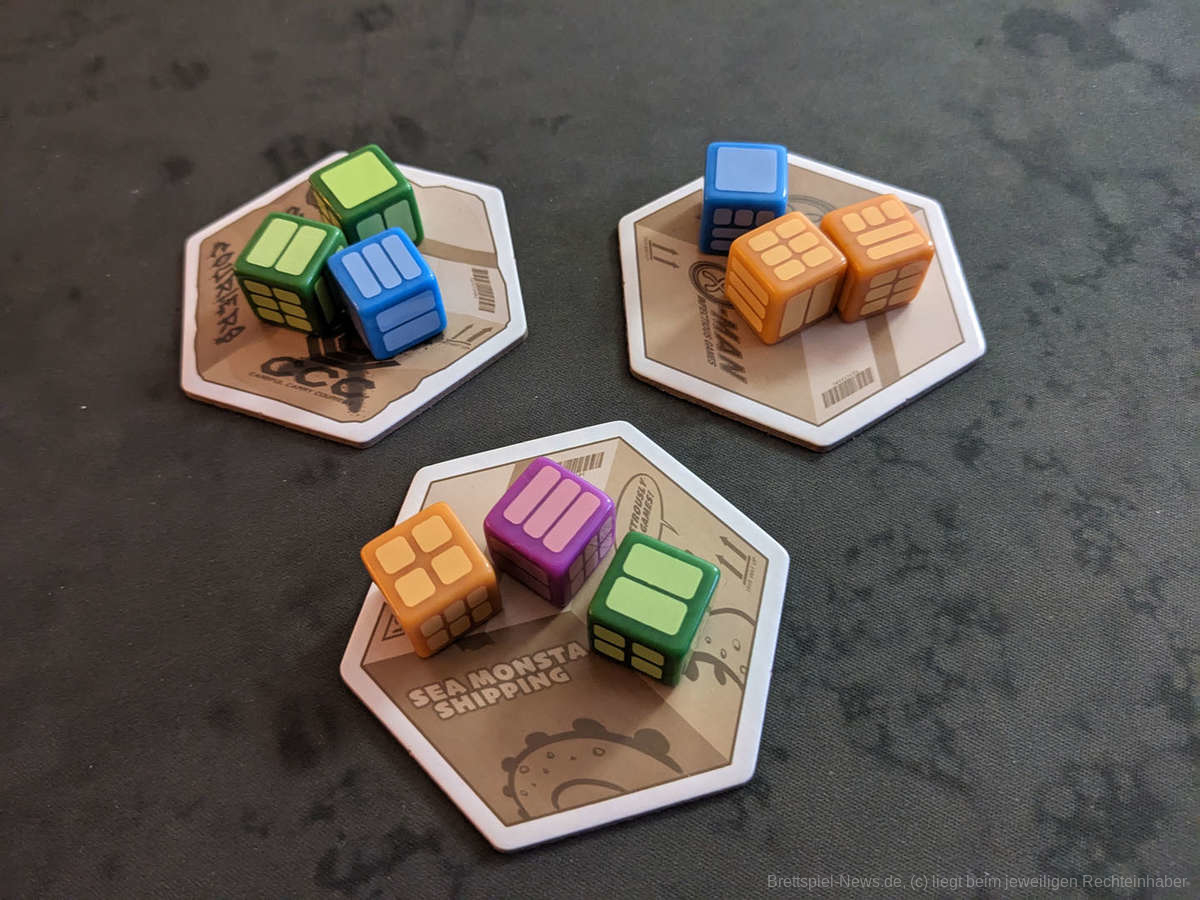 Die Anleitung ist gut strukturiert, lässt keine Fragen offen und beinhaltet neben den Grundregeln noch einige Module und zwei Solovarianten. Somit ist hier für jeden Geschmack etwas dabei. Der Grundmechanismus die Würfel auf Plättchen zu legen, von denen wir uns dann eins aussuchen hat uns an "Azul“ erinnert, das Spiel, welches uns damals wieder ins Brettspielhobby gezogen hat und auch hier weiß der Mechanismus zu überzeugen. Hinzu kommen noch eine Vielzahl an Charakterkarten mit besonderen Fähigkeiten und einige Karten, die Sonderpunkte bringen, wenn z.B. als erstes ein bestimmtes Muster mit den Würfeln gelegt wurde.