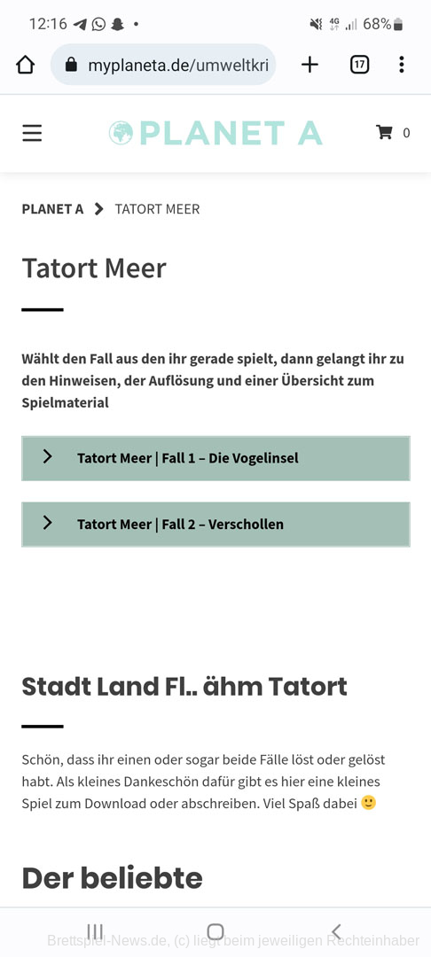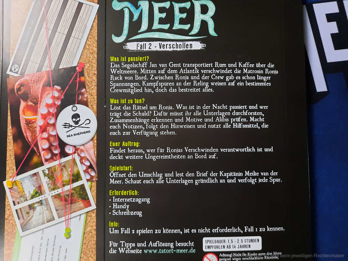 Auch wenn „Tatort Meer – Fall 2 – Verschollen“ nicht die Offenbarung war, kann ich es dennoch empfehlen. Es ist gut verzahnt und bietet Rätselspaß vom Anfang bis zum Ende. Wenn ich die Wahl zwischen „Tatort Meer“ und einem Escape-Room-Spiel hätte, würde ich immer zum Ermittlungsspiel greifen. Es offeriert einfach diese kleine Tauchfahrt in die Welt des Verbrechens und nicht einfach in Reihe geschaltete Logikrätsel.
