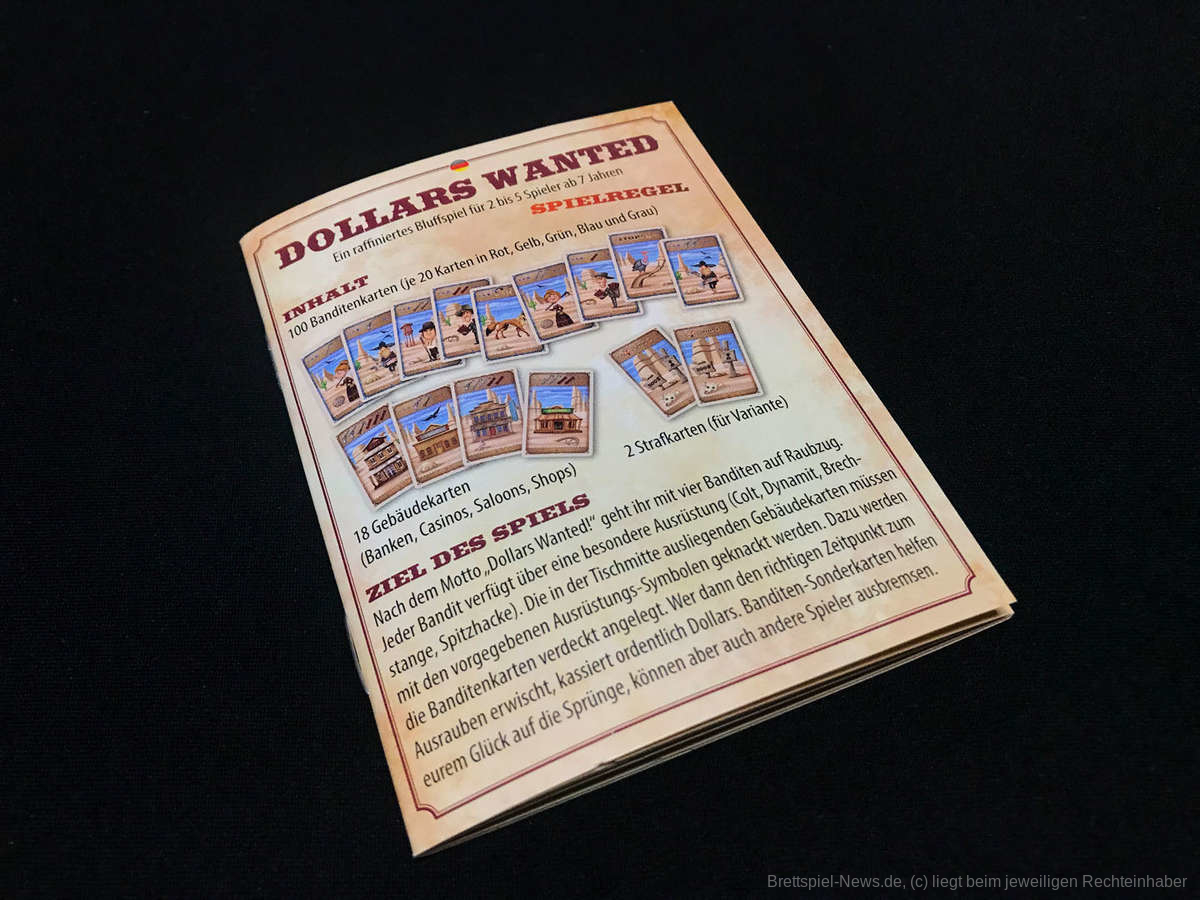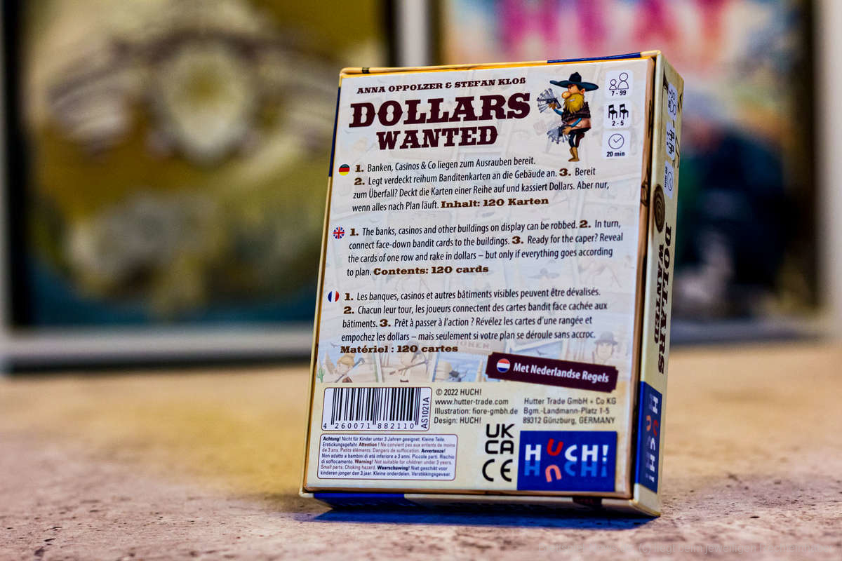 "Dollars Wanted" ist ein kurzweiliges Familienspiel mit einem einfachen Regelwerk. Das Regelheft kommt in vier Sprachen (Deutsch, Englisch, Französisch und Niederländisch) daher. Das Spiel selber ist sprachneutral. Der Aufbau und die Beispiele des Regelwerks sind sehr gut.