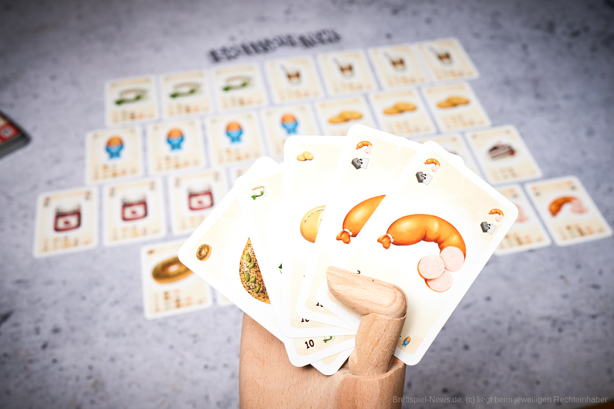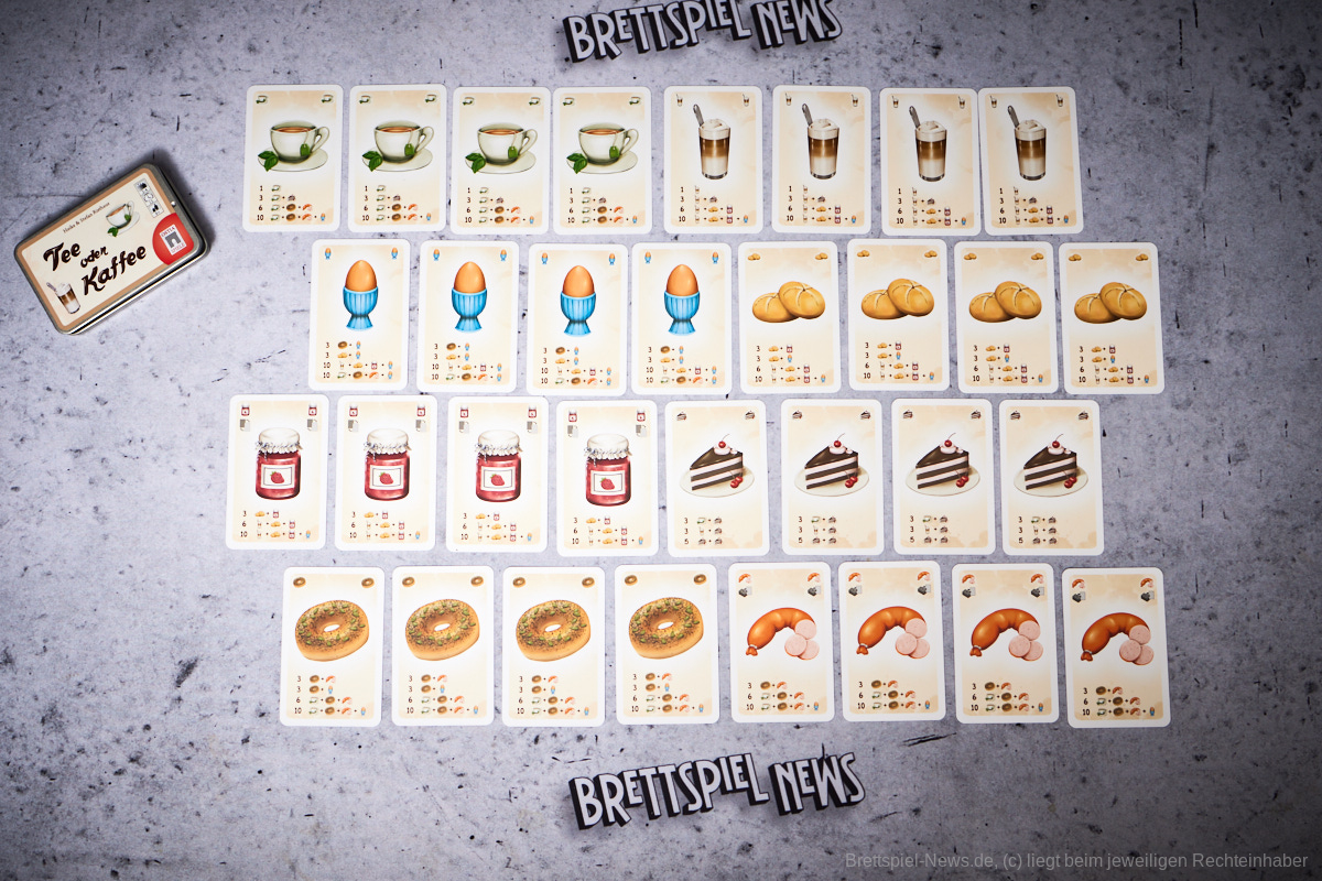 ʺTee oder Kaffee“ punktet mit seinen sehr durchdachten Mechaniken und thematischen Sets, obwohl ich mich als Ostfriese frage, was zur Hölle Wurst beim Tee zu suchen hat, während der Kaffee mit Kuchen und Marmeladenbrötchen kombiniert wird. Beim Spielen bekommt man das Gefühl sich sein perfektes Frühstück zusammenzustellen und da ergibt es durchaus Sinn auf die Vielfalt und die passende Kombination zu achten. Lässt man sich beim Frühstücken Zeit, kann sich das eben lohnen.