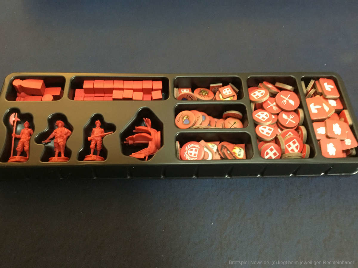 Nebst Meilensteinen, die Siegpunkte bringen, gibt es noch sogenannte Ideen. Diese Technologien sollten möglichst früh erforscht werden, bringen sie doch günstige Vorteile für den Rest des Spiels. Und wenn andere Nationen auf den Zug aufspringen sollten, bringt das den Ideengebern weitere Punkte. Die Stabilität der Reiche kann sich ändern. Alliierte können in Kriege eintreten. Selbst die päpstliche Kurie kann unter die Kontrolle eines Königs geraten und dann gegnerische Herrscher exkommunizieren oder heilige Kreuzzüge ausrufen. Und bei dieser fast schon absurden detailverliebten Spieltiefe, überrascht es auch nicht mehr, dass auch Staatsreligionen geändert werden können. Aus dieser Fülle die richtige Aktion zu wählen, erfordert einige Erfahrung. Ein unverzichtbares Hilfsmittel ist die sehr gut geratene Spielhilfe. Selbst sie kann auf zwei vollen Seiten nicht alles abbilden, wirkt aber dennoch wie Schmieröl auf den Spielfluss.