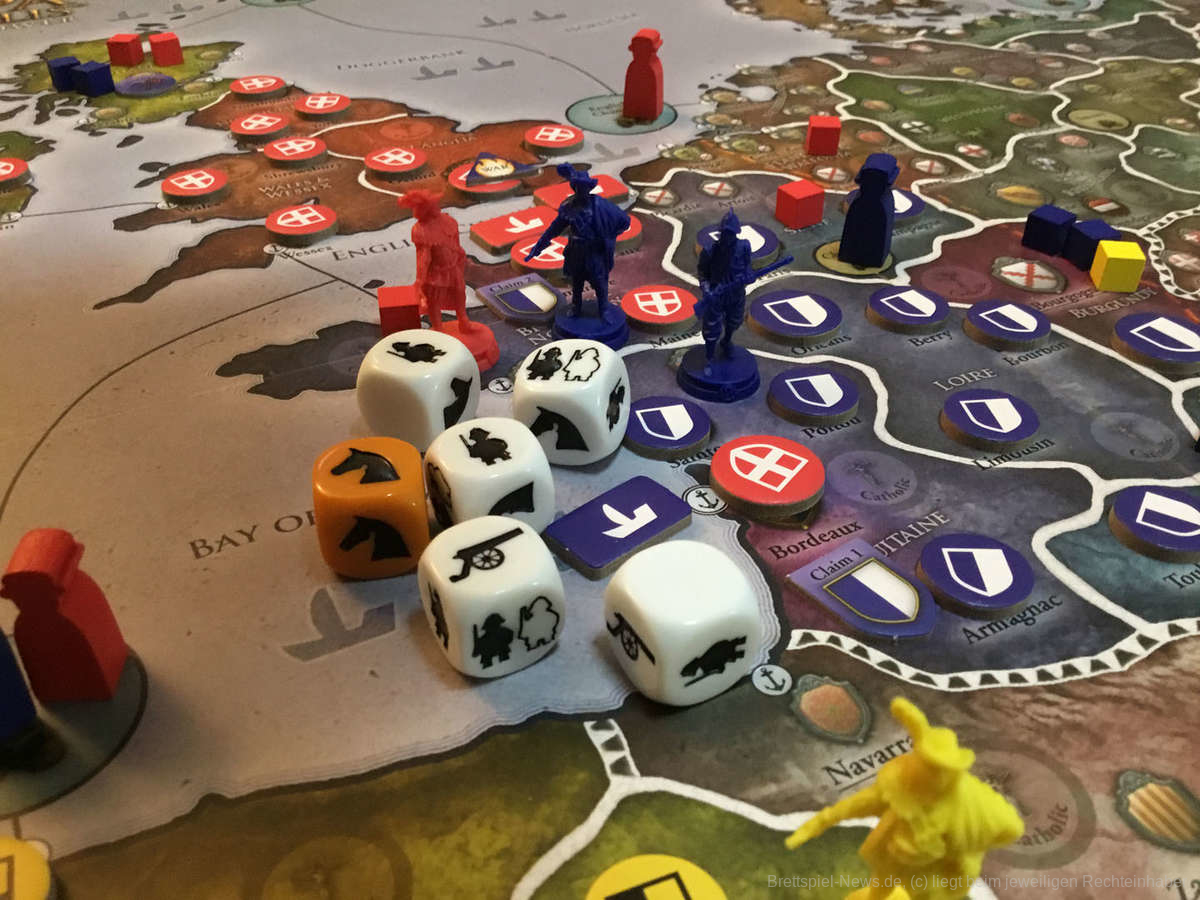 Auf die Aktionsphase entfällt die meiste Spielzeit. Besonders in den ersten Partien sind die angegebenen 90 Minuten nicht zu schaffen. Abgesehen von den Aktionskarten ist praktisch fast alles möglich. Könige und Berater können sterben. Herrscher können auch als General auf dem Schlachtfeld kämpfen. Ihrer Lebenserwartung ist das allerdings meist nicht zuträglich. Es gibt Allianzen, Krieg und anschließende Friedensverhandlungen, die auch durch eine Kapitulation aufgezwungen werden können. Um einen Krieg zu beginnen, braucht es natürlich einen triftigen Grund. Den nötigen Casus Belli gilt es dann nur noch herbeizuführen. Royale Hochzeiten dürfen natürlich auch nicht fehlen. Sollte ein Ehepartner sterben, wäre das beispielsweise solch ein Kriegsgrund.