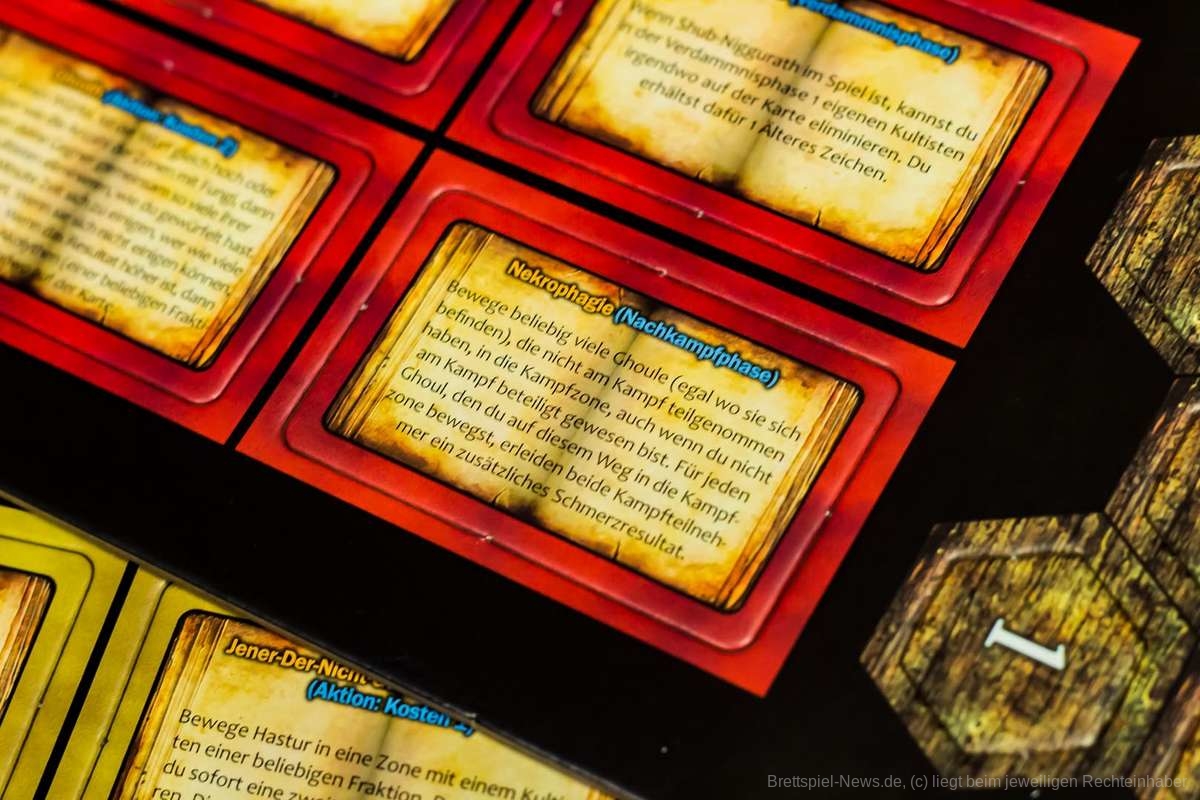 - Tor: Zwei Macht für jedes kontrollierte Tor. Ein Tor gilt als kontrolliert, sobald ein Kultist der eigenen Fraktion auf dem Tor platziert wurde. Außerdem erhalten alle Personen eine Macht für jedes unkontrollierte Tor auf dem Spielplan.