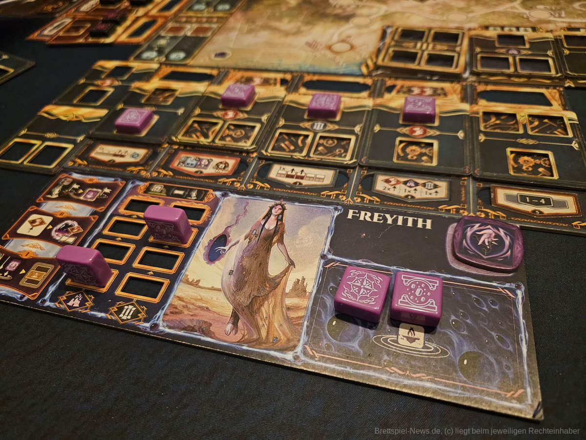 Das lässt auch schon durchschimmern, dass “An Age Contrived“ einen höheren Fokus auf das individuelle Spielen setzt. Es gibt kaum Möglichkeiten den anderen Personen am Tisch wirklich im Weg zu stehen, geschweige denn etwas wegzunehmen. Natürlich werden Personen belohnt, die gut planen können und die Monumente und/oder andere Aktionsfelder besser bauen und nutzen können, wirklich schaden kann man den anderen aber nicht. Spielgruppen sollten nach dem jetzigen Stand des Spiels auch davon ausgehen, dass insbesondere die ersten Spielzüge einiges an Zeit in Anspruch nehmen werden, da es viele Möglichkeiten gibt, mit denen Neulinge erst einmal klarkommen müssen. Analyse Paralyse ist hier ein großes Stichwort, das vielen Personen ein kleines Bein stellen könnte.