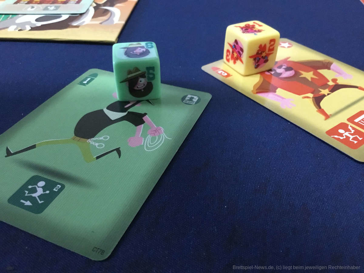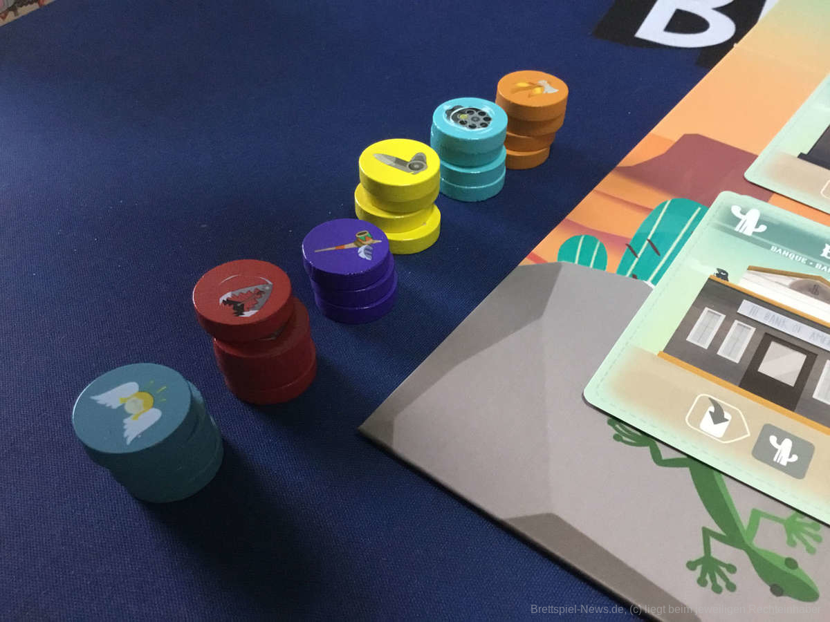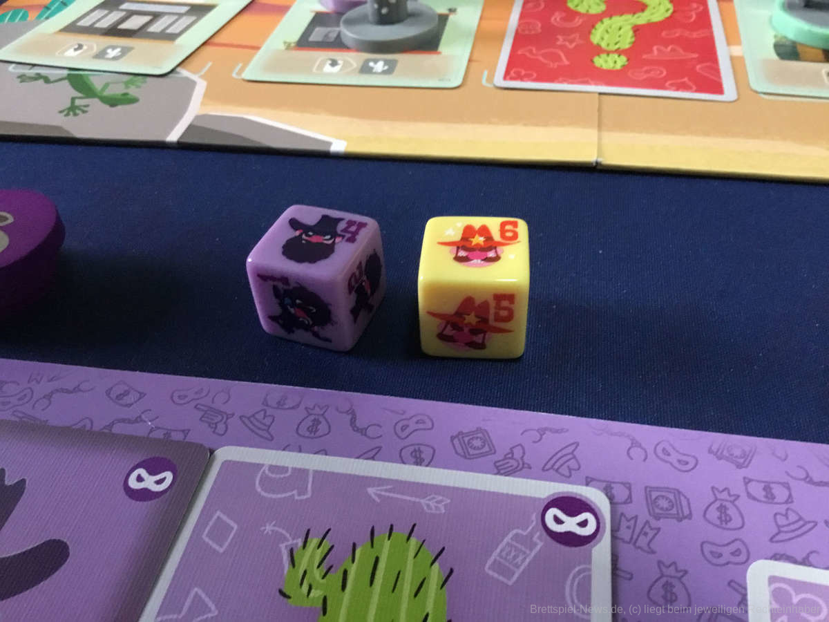 Das Spiel bietet zudem Mechaniken, mit denen man die anderen Fraktionen ein wenig ärgern kann. Hierbei ist aber auch das strategische Geschick der jeweiligen Fraktionen entscheidend. Die alleinige Zufallsplatzierung der Gebäude kann aber nichtsdestotrotz Spielentscheidend sein. Hinzukommt, dass Personen, die ein gutes Würfelglück an den Tag legen, einfacher gewinnen können. Klar, der Würfelwurf in Duellen lässt sich einmalig mit der Reservekarte manipulieren, gibt es aber mehrere Duelle in einer Runde oder würfelt eine Seite einfach nur schlecht, kann ein Spiel schnell entschieden sein. „Cactus Town“ bietet dafür eine „Revolverhelden“-Variante an, bei der zusätzliche Modifikatoren für die Duelle ins Spiel kommen, was dem Ganzen zumindest ein wenig mehr Tiefgang verleiht. Spielgruppen, die generell Abstand von Würfelglück nehmen, sollten sich hier vorweg aber wohlmöglich ein genaueres Bild machen, ob ihnen das Spiel zusagt.