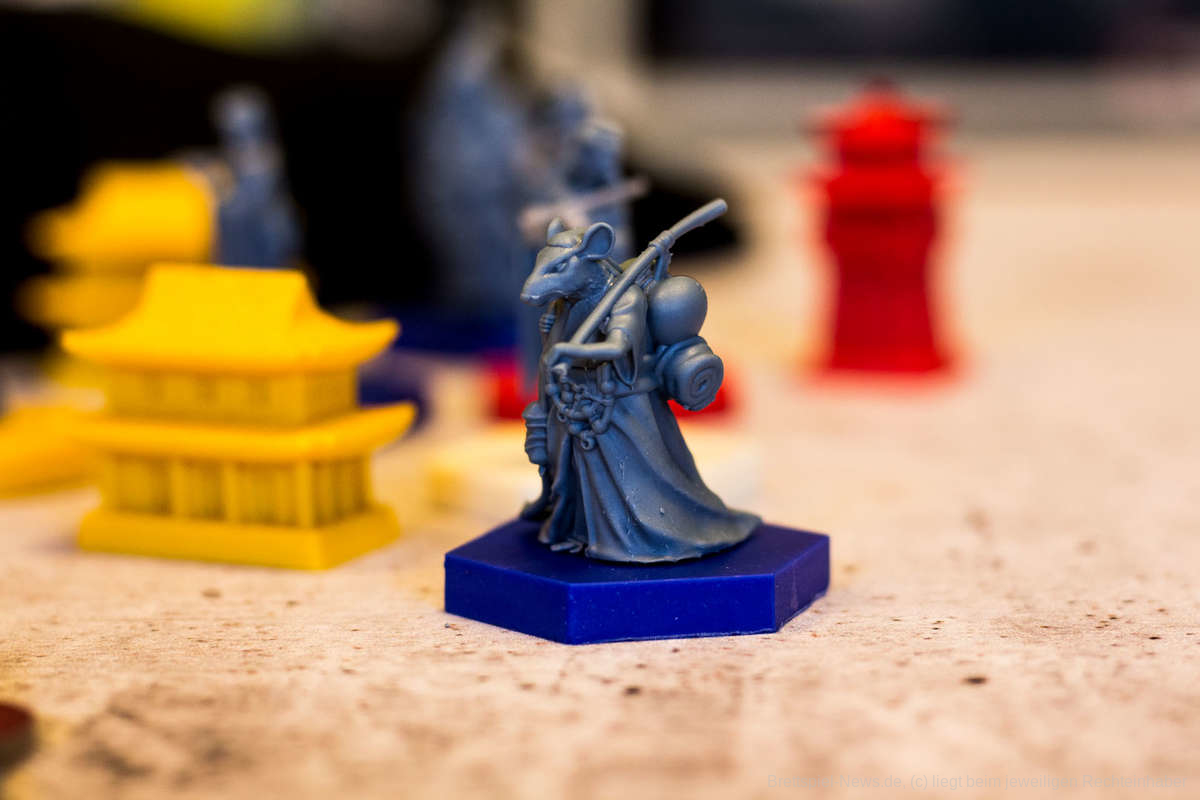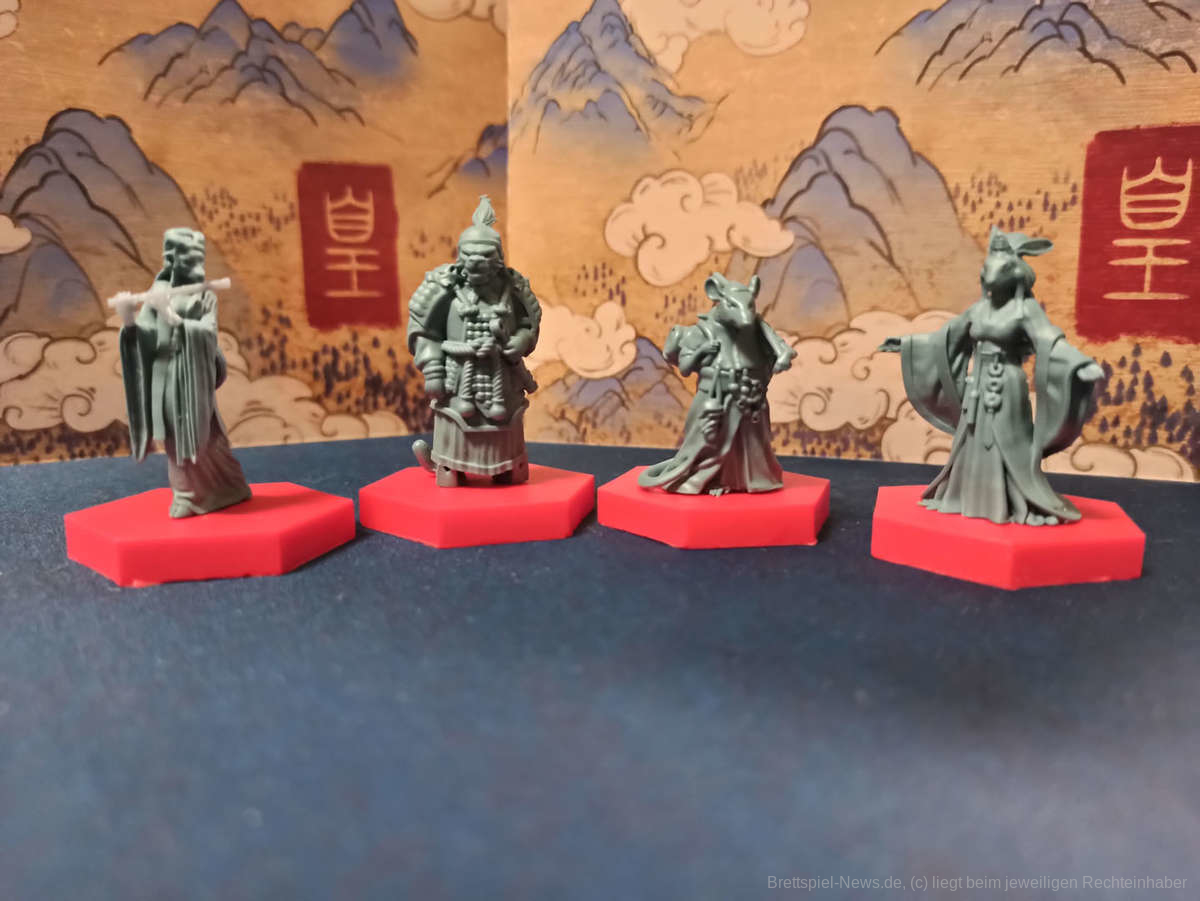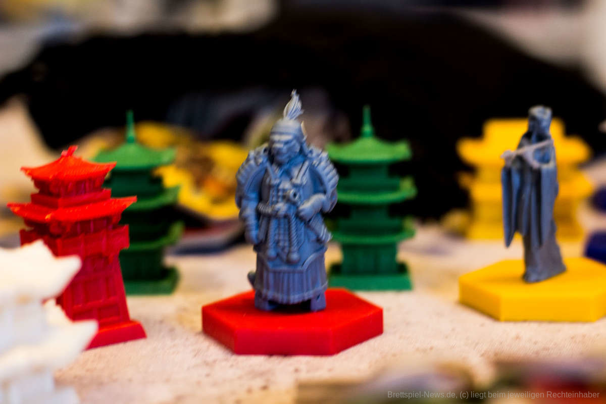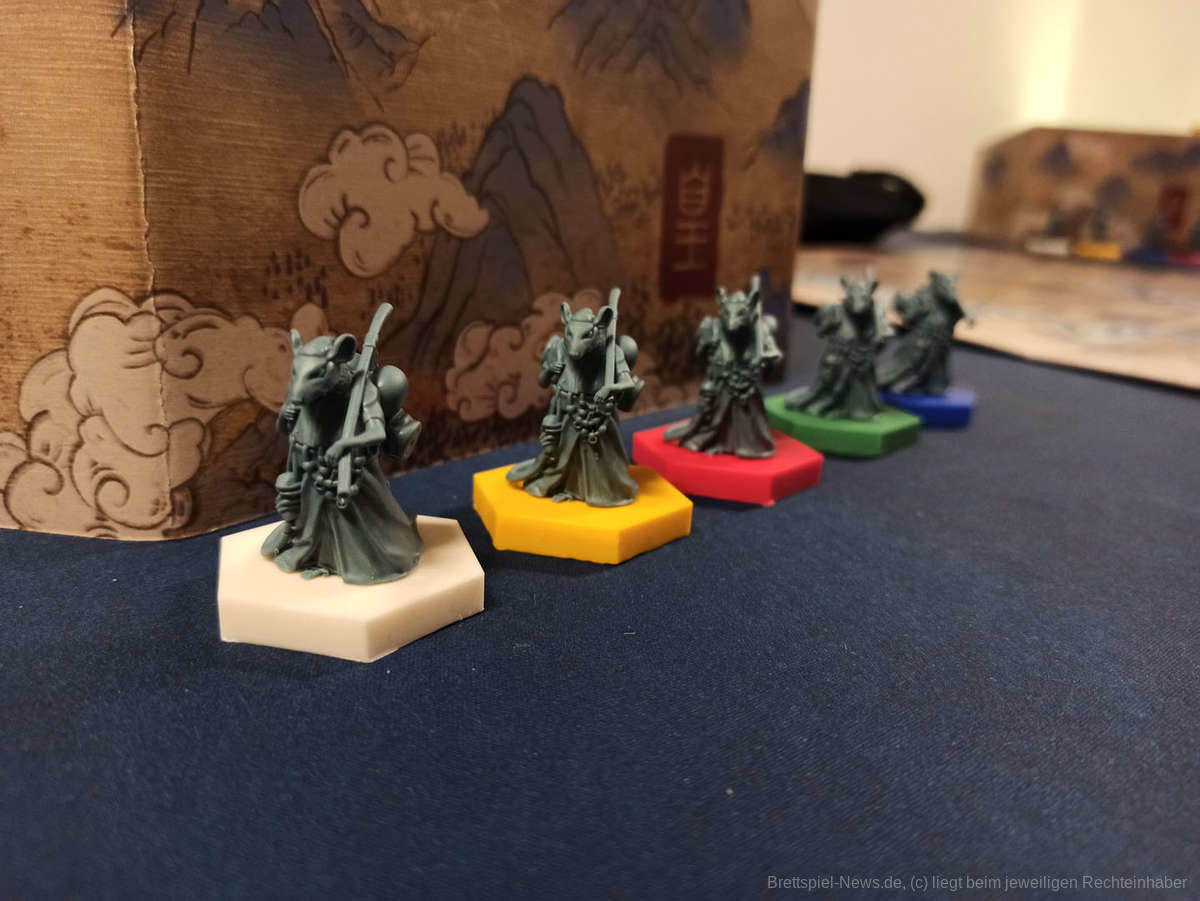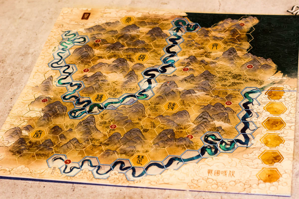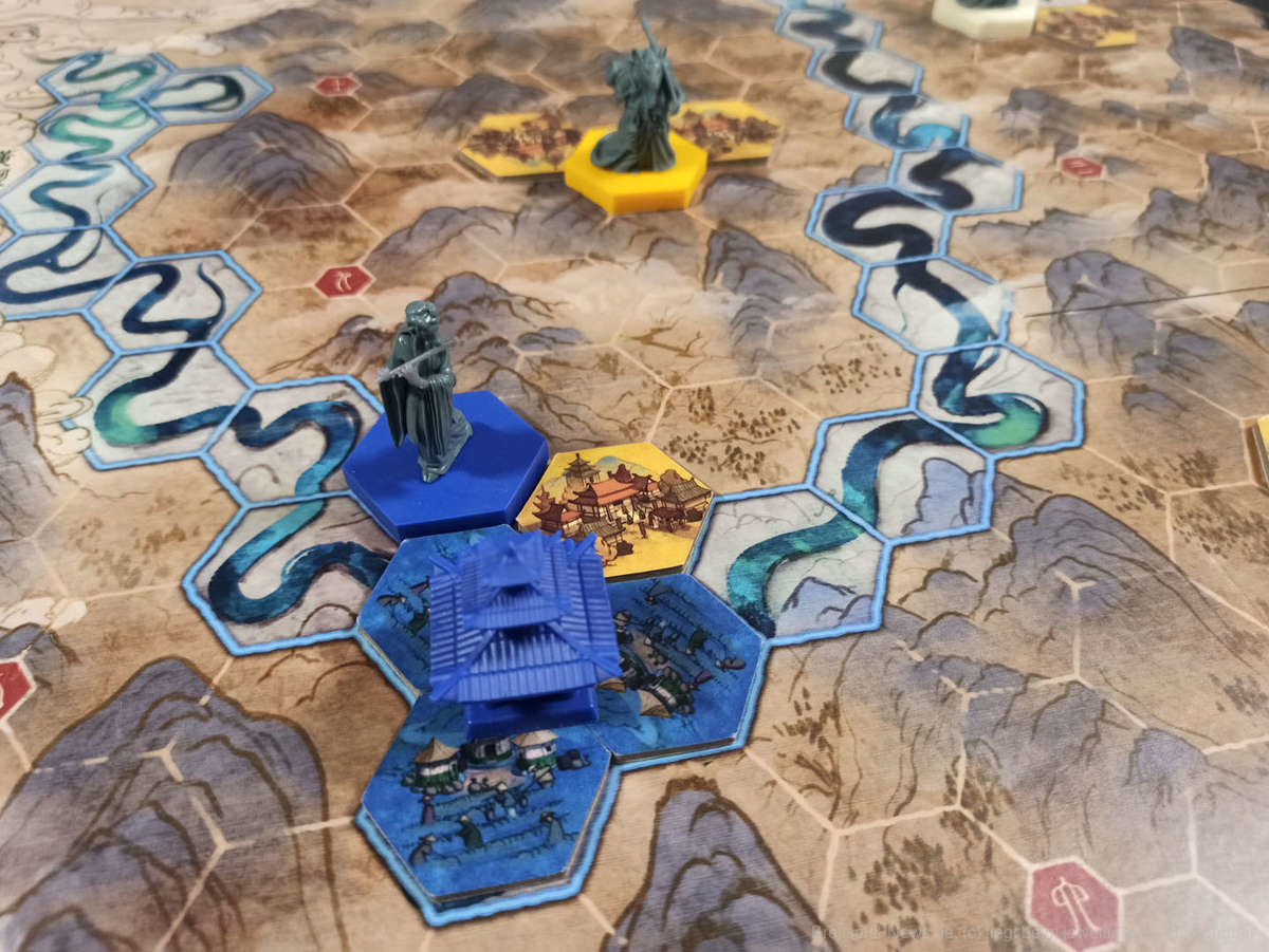Die thematische Umsetzung der Zeit der „streitenden Reiche“ ist wunderbar gelungen. Die Spielmechanik provoziert immer wieder Kämpfe, sei es um jemandem eine starke Position, beispielsweise in einem Gebiet mit Pagode, für die es jede Runde einen extra Siegpunkt gibt, streitig zu machen oder auch nur weil der Zeitpunkt günstig und es ein einfach zu erlangender Siegpunkt ist.