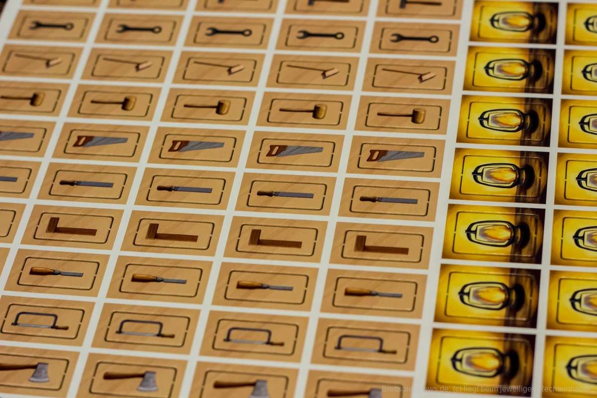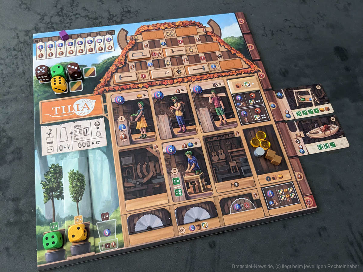 Die thematische Umsetzung haben wir schon länger bei keinem Eurogame so gut ausgearbeitet bzw. thematisch passend gesehen. Das „Auseinandersägen“ und „Zusammenkleben“ der Würfel, um das gewünschte Holz zu erhalten, fühlte sich sehr stimmig an und wir hatten wirklich das Gefühl, an einem Produkt zu arbeiten und nicht stumpf Ressourcen zu sammeln.