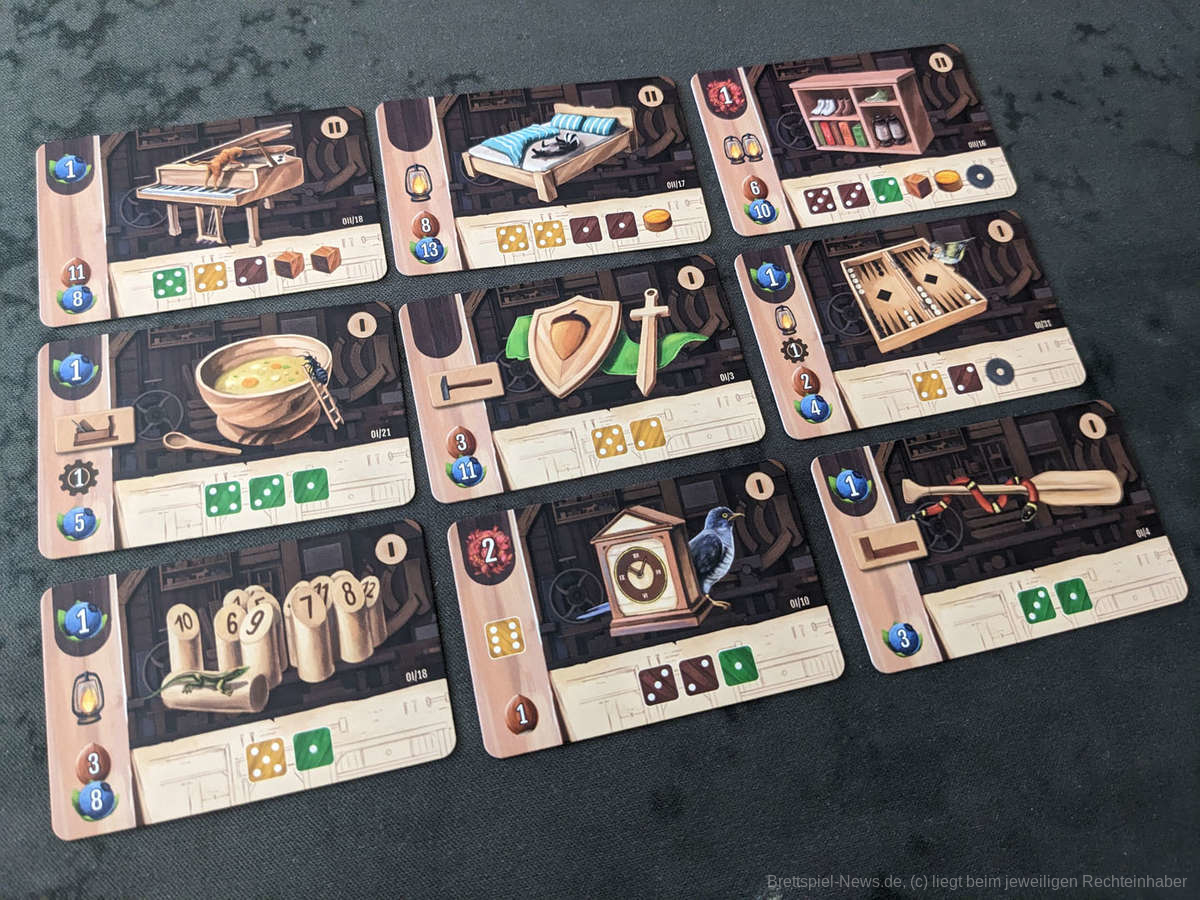 Im Laufe der Partie generieren wir durch unsere Arbeit regelmäßiges Einkommen und können unser Ansehen steigern, was die Anzahl der Siegpunkte pro erfüllten Auftrag steigern kann. Eine Partie wird über 13 Runden gespielt, in denen wir grundsätzlich auch nur 13 verschiedene Hauptaktionen aus dem Rondell ausführen können. Jede Aktion sollte also gut gewählt sein, um Ende der 13. Runde die meisten Haselnüsse gesammelt zu haben.