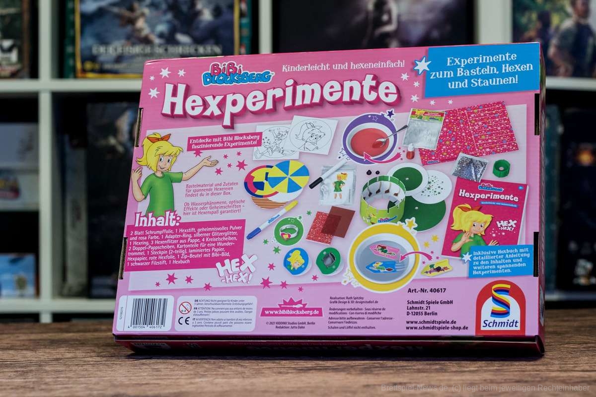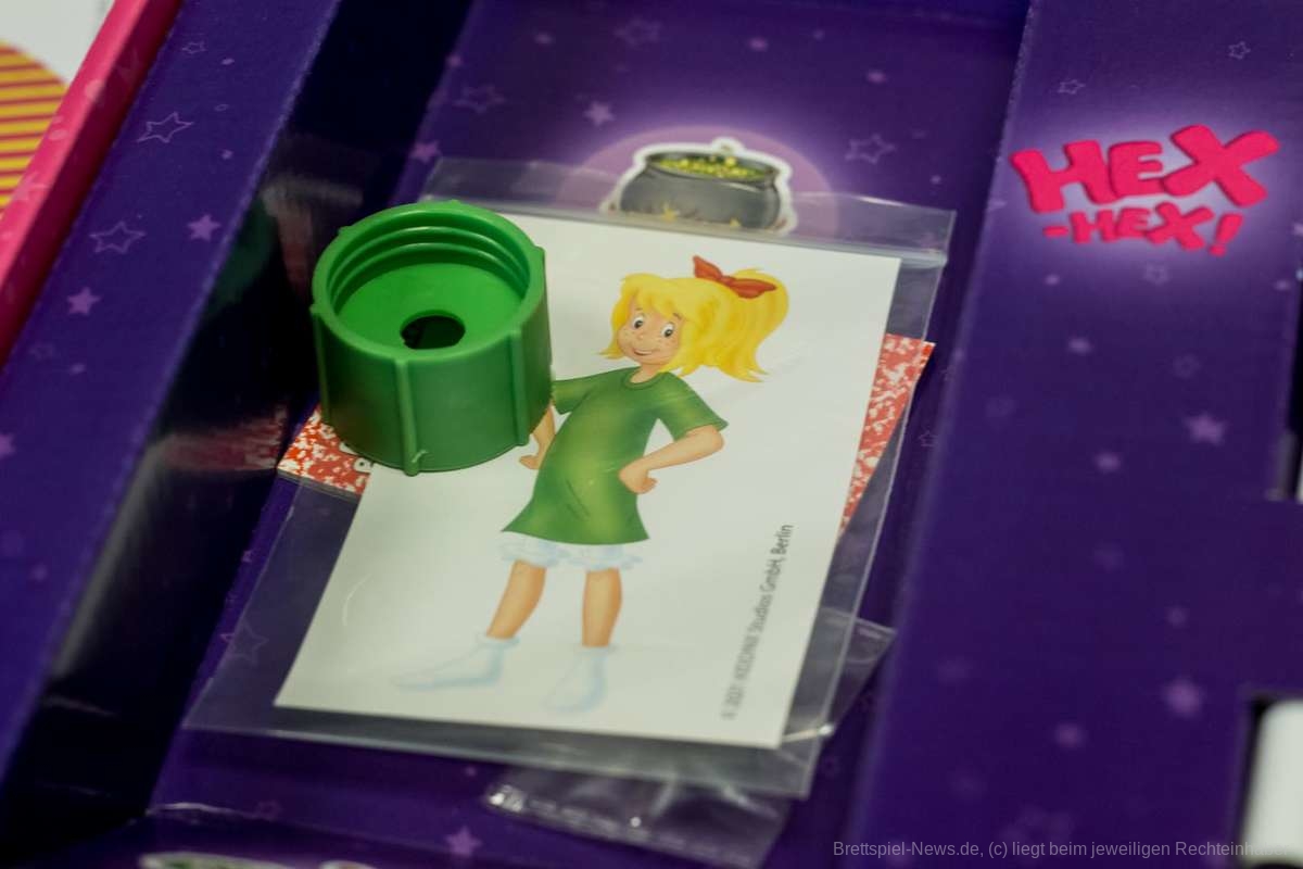 Zunächst fällt natürlich die Spielschachtel ins Auge. Die Kombination aus Bibi Blocksberg und einer knallrosa Box zielt aus meiner Sicht unnötig stark auf Mädchen als Zielgruppe ab. Dies ist am Inhalt des Experimentier-Kastens jedoch nicht spürbar. Jedes der Experimente (vielleicht abgesehen vom Herz-Ring) kann genauso gut von Jungen mit Spaß durchgeführt werden. Vermutlich hätte man durch eine etwas neutralere Farbe mehr Kinder angesprochen.