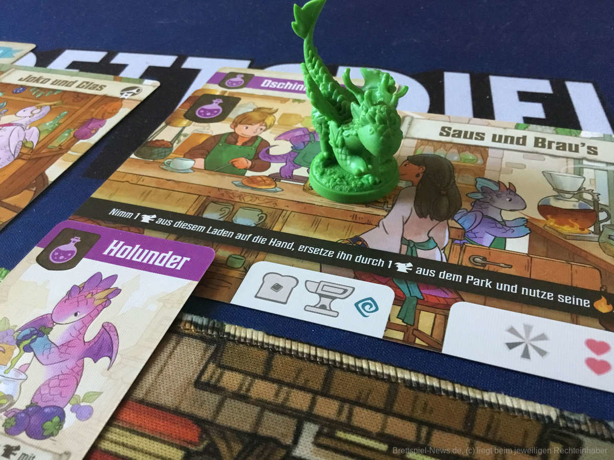 Das Verzaubern eines Ladens bringt Siegpunkte und weitere Annehmlichkeiten mit sich. Allerdings kostet solch mächtige Magie Rohstoffe aus dem eigenen Vorrat. Zum Ausgleich stehen dafür aber alle Fähigkeiten der dort angestellten Werkeldrachen einmalig zur Verfügung.