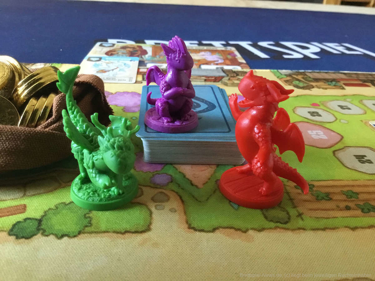 Neben den handwerklich begabten Drachen, bevölkern auch die schillernden Schmuckdrachen die Stadt. Durch verschiedene Effekte können Spielerinnen und Spieler diese bekommen. Manche bringen Punkte, sobald ihre Bedingungen erfüllt sind, andere sparen ihren Punkteregen für die finale Wertung auf.