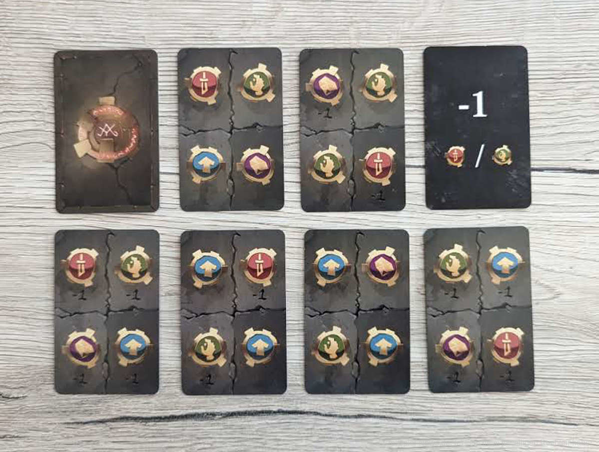 Aufwerten und Verschlanken des Kartendecks funktionieren durch die unterschiedlichen Anordnungen auf den Koloss-Karten überraschend abwechslungsreich. Hier schafft es der Koloss, ohne zusätzliche Regeln und Ausnahmen immer wieder neue Kombinationen einzufordern.