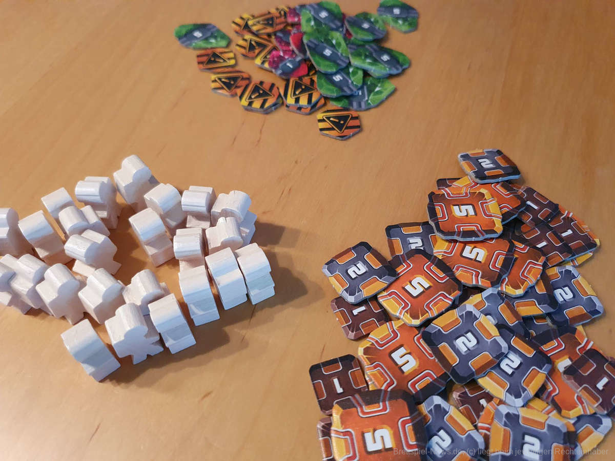 In meinem Fall habe ich wohl eine Kick-Starter Version bekommen, in der die Crewmitglieder bunte Plastik-Roboter sind. In der normalen Version sind die Crewmitglieder weiße Holzmännchen. Der Spielverlauf ändert sich dadurch jedoch nicht.