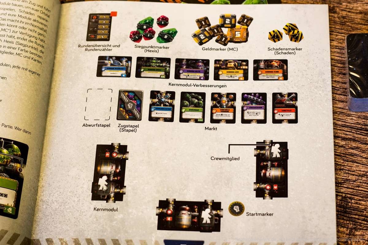 - Wartung: Alle Schadensmarker werden aus allen Modulen entfernt. Da die beschädigten Module in den Punkten 1 und 3 der Vorbereitung der nächsten Runde noch sehr wichtig sind und die Ressourcen (MC und Crewmitglieder) für die folgende Runde bestimmen, ist es wichtig, diesen Punkt ganz am Ende durchzuführen.