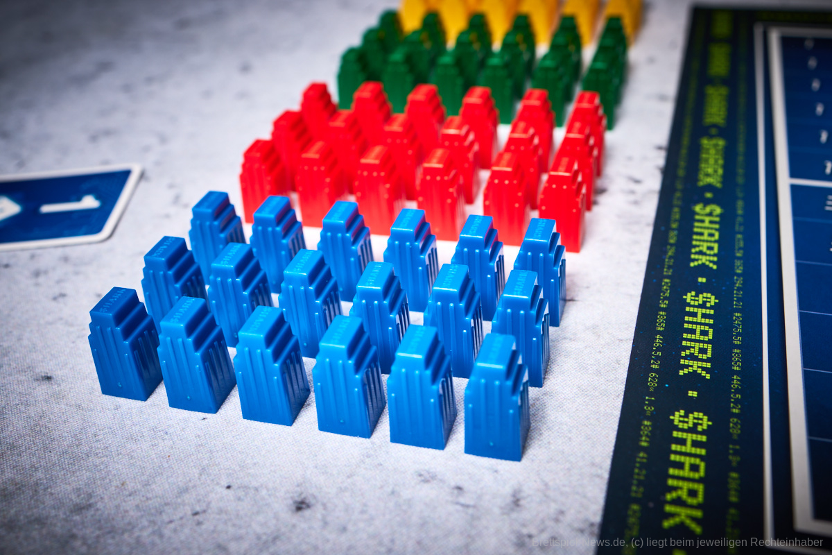 Das was „$hark“ wirklich hoch angerechnet werden sollte ist, dass es klare Siegbestimmungen definiert, die auch nach der angezeigten Spieldauer von ca. 60 Minuten realistisch erreichbar sind. Spielgruppen lassen sich hier also nicht auf ein Endlosspiel ein, auch wenn es an einigen Ecken und Enden an „Monopoly“ erinnert.