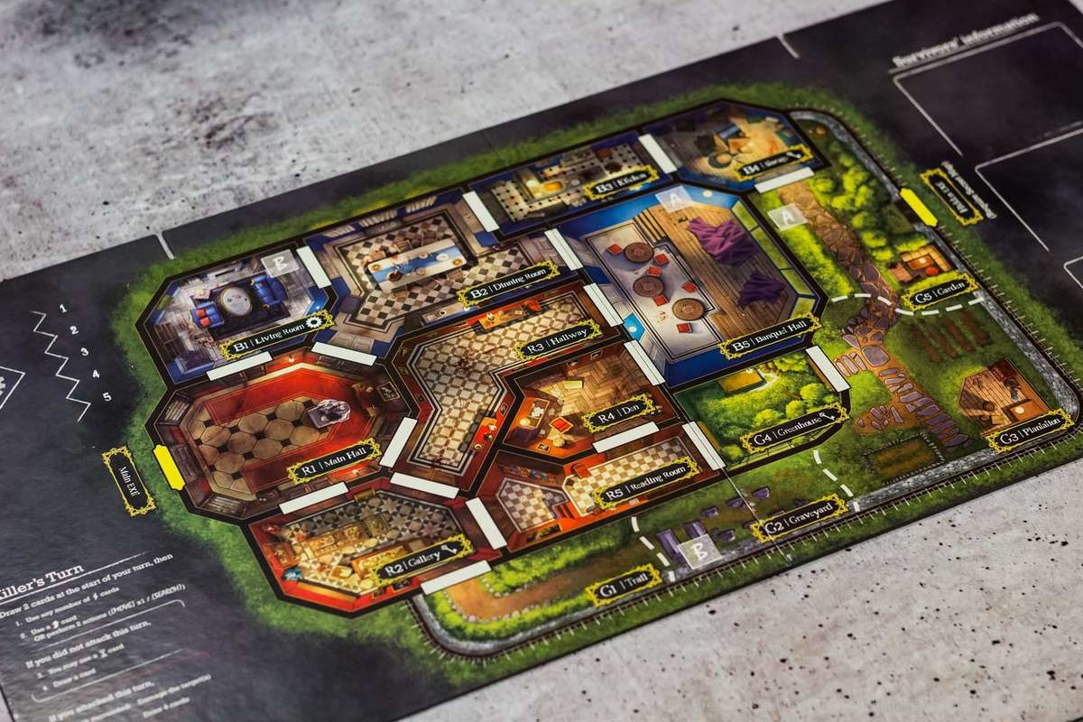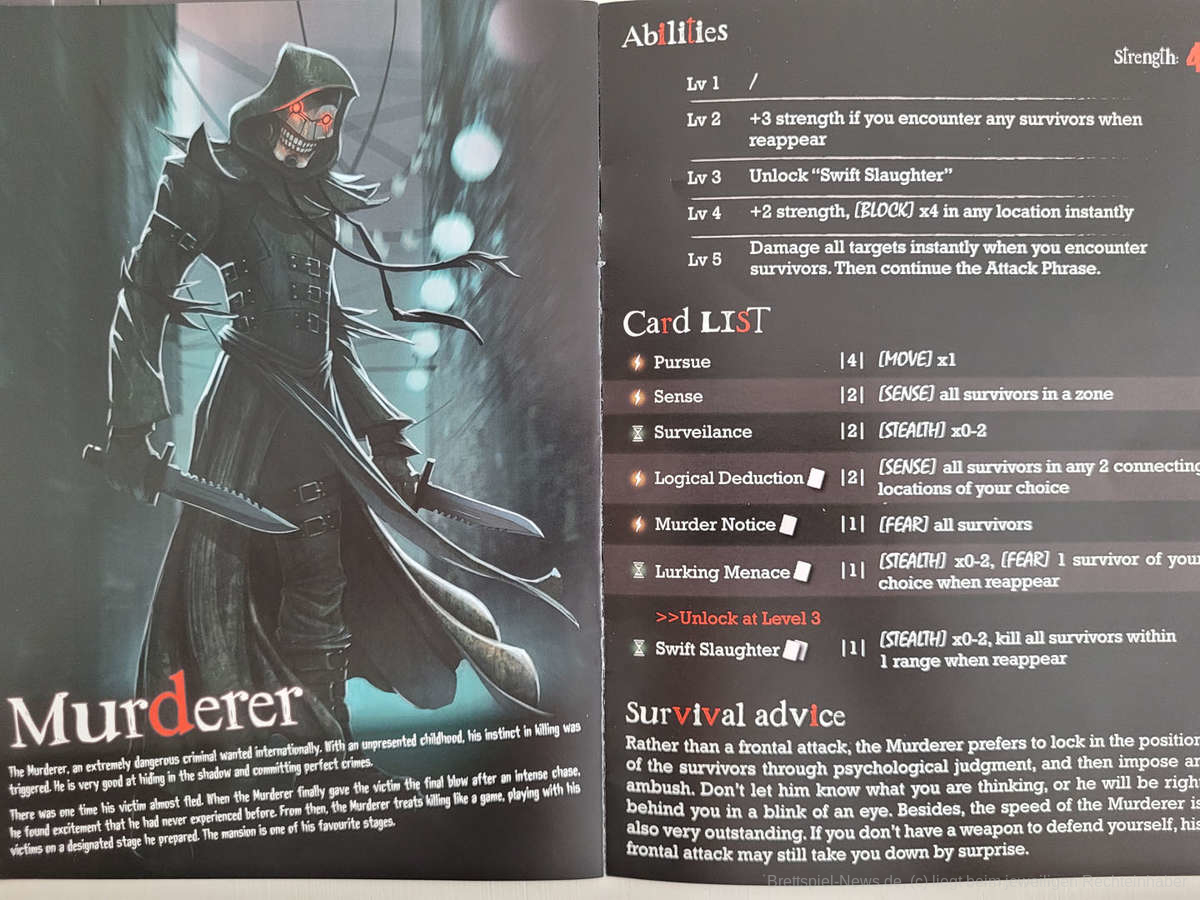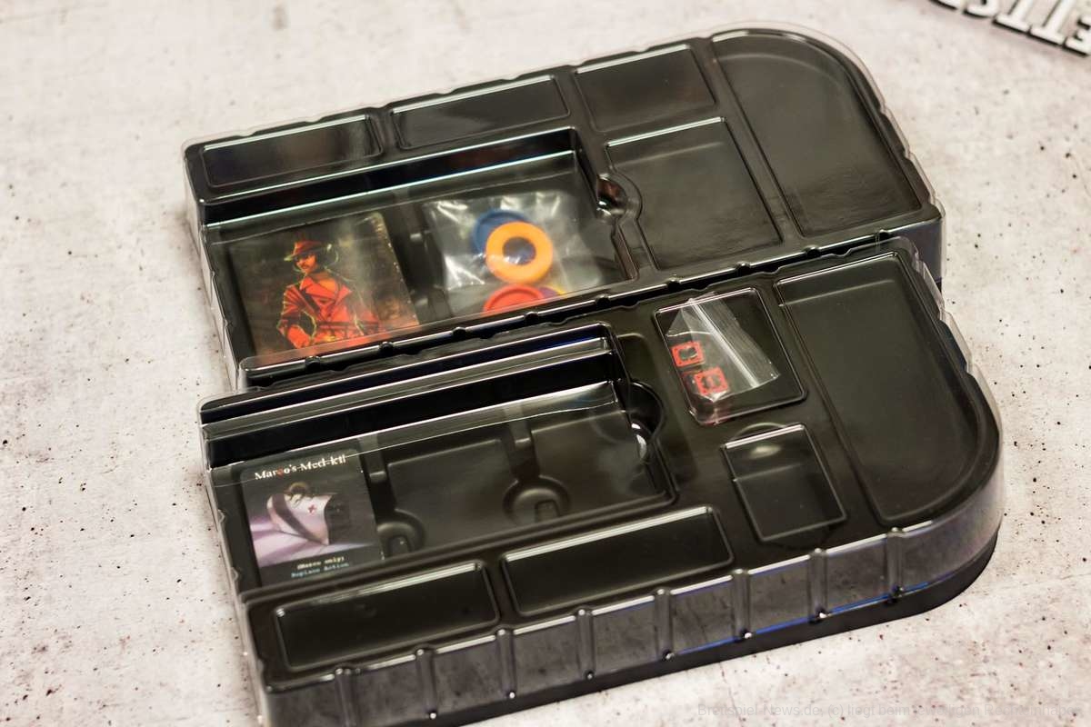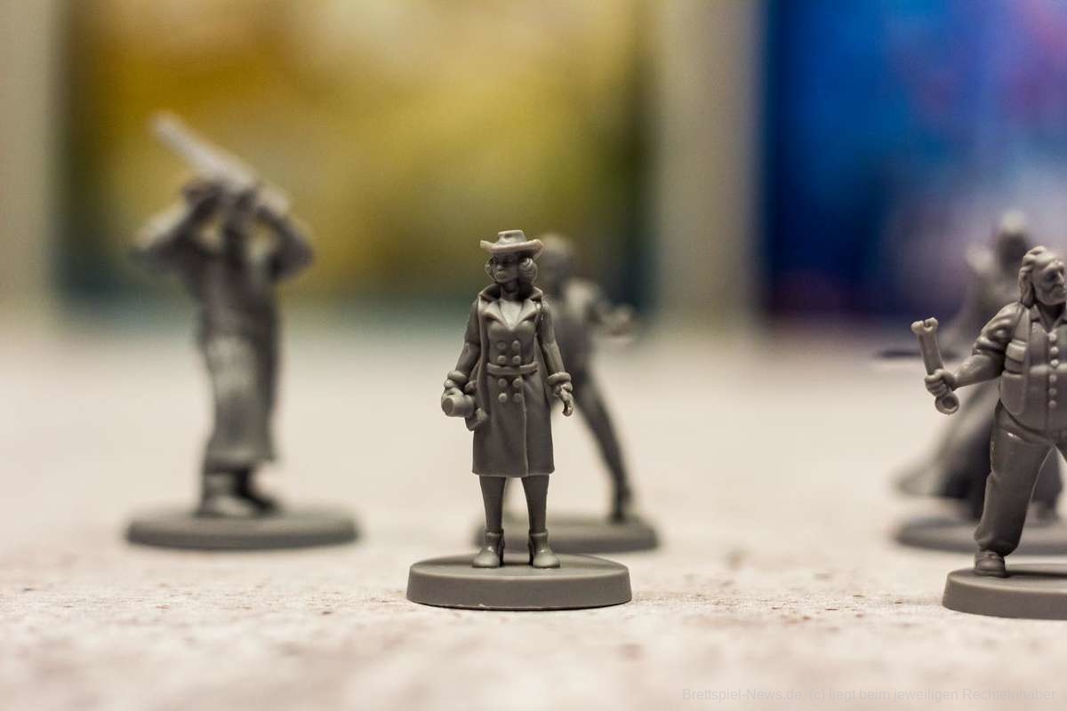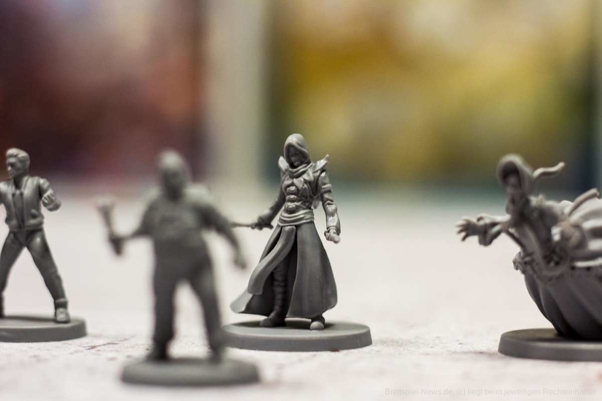 Noch nie ist es mir so schwergefallen wie heute, den vorangegangenen Absatz in meine Prototyp-Review zu schreiben, da das Spiel bereits wirkt, als würde ich hier die finale Version in meinen Händen halten. Ich könnte mir hier heute den Mund fusselig reden, warum mir das Material so gut gefällt. Stattdessen bitte ich euch einfach, die Bilder auf euch wirken zu lassen. Das Material ist absolute Spitzenklasse. Die Miniaturen der Killer sehen hervorragend aus. Besonders die Miniatur des Geistes hat es mir angetan. Die Karten und die Playerboards sind wunderschön illustriert und das Material fügt sich perfekt ineinander ein. Das Alleinstellungsmerkmal jedoch ist die riesige Villa in der Mitte des Spielplans. Ich kann nur meinen Hut vor solch vortrefflicher Qualität ziehen.