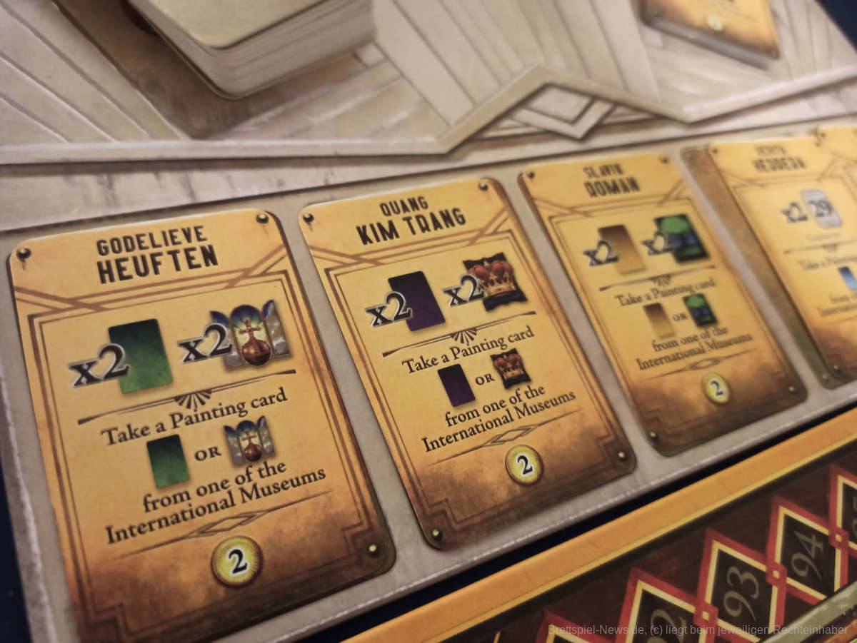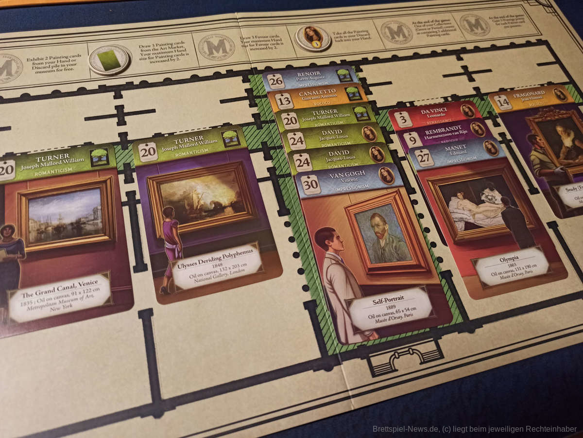Die Trendkarten steuern den Fokus auf bestimmte Gemälde, da diese bei Spielende einiges an Siegpunkten generieren. Hier haben alle andere Vorgaben, was auch dabei hilft, dass sich nicht alle auf die gleichen Gemälde stürzen.