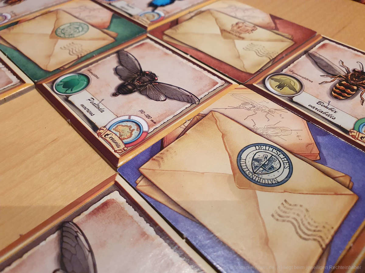 Allerdings bietet das Spiel trotz des guten Spielflusses und der verständlichen Erklärung wenig Interaktion. Alle spielen mehr oder weniger für sich und bauen an ihrer eigenen Sammlung. Es ist zwar möglich, anderen ein passendes Insekten-Plättchen vor der Nase weg zu schnappen, aber das Spiel hält genug Ausweichmöglichkeiten bereit, um in so einem Fall andere Ziele zu wählen.