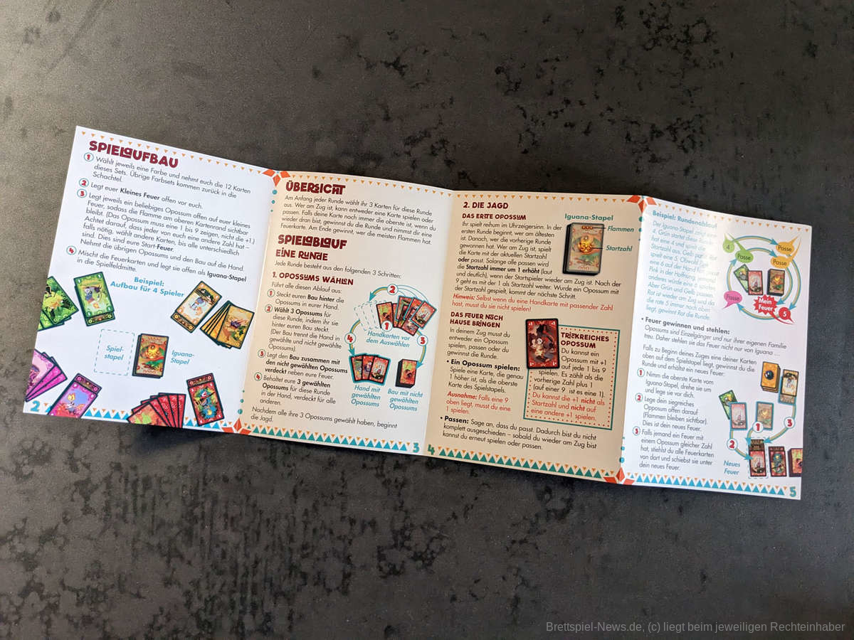 "Tails on Fire“ fällt im Spielregal definitiv auf. Die mexikanische Künstlerin Mayra Guadalupe Ornelas Ramo hat hier ganze Arbeit geleistet. Das Artwork mag vielleicht nicht jedem gefallen, uns konnten die toll gestalteten Spielkarten jedoch komplett überzeugen. Auch die Anleitung ist ansprechend gestaltet und lässt keine Fragen offen. Die Regeln sind grundsätzlich sehr einfach und zugänglich, aber durch die ungewohnte Spielweise ist es teilweise sehr schwierig das Spiel auf rein verbaler Ebene zu erklären. In unseren Runden hat es sehr geholfen einfach loszuspielen und die Regeln direkt in einer gespielten Runde zu erklären und, wenn alle die Regeln verstanden haben, mit der eigentlichen Partie zu beginnen. So konnten alle schnell in das Spiel finden und man hatte bereits während der Regelerklärung Spaß.
