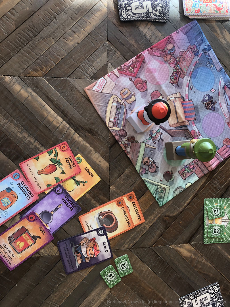 Ansonsten herrscht eher weniger Interaktion. Meist haben wir selbst gegrübelt und überlegt welche Zutaten wir sammeln und welche taktische Aktion die nächste sein soll. Die verschiedenen Zutatenkarten haben es in sich - zu viel von manch einer Sorte und es gibt am Ende Punktabzug. Gut, dass ungewollt erhaltene Zutatenkarten auch schnell an die mitspielenden Personen abgegeben werden können. So kommt direkt wieder Schwung in die Küche.