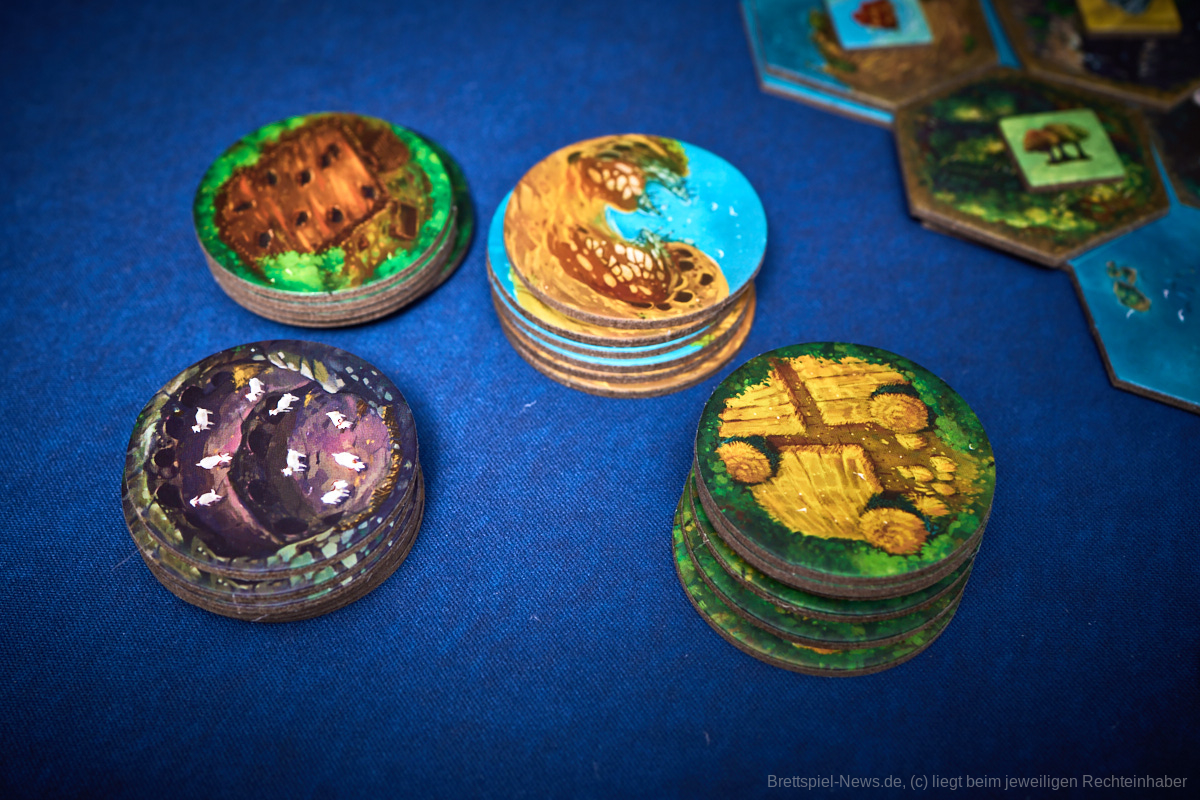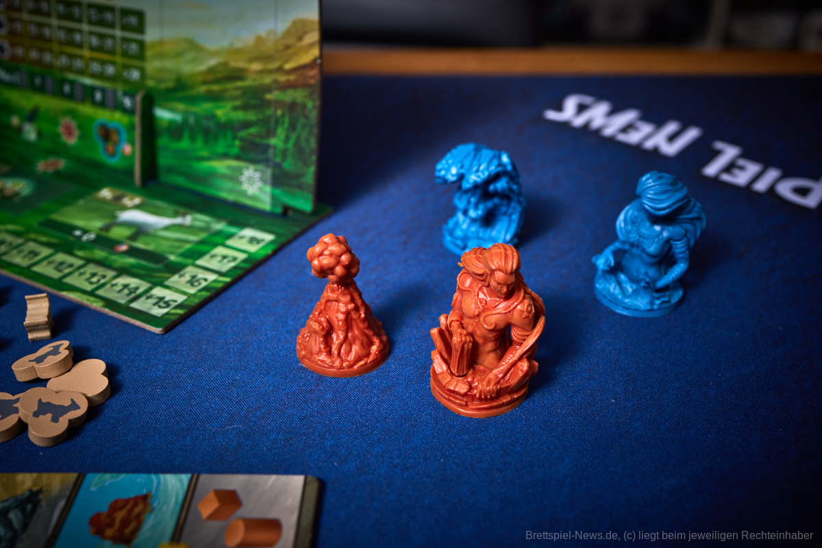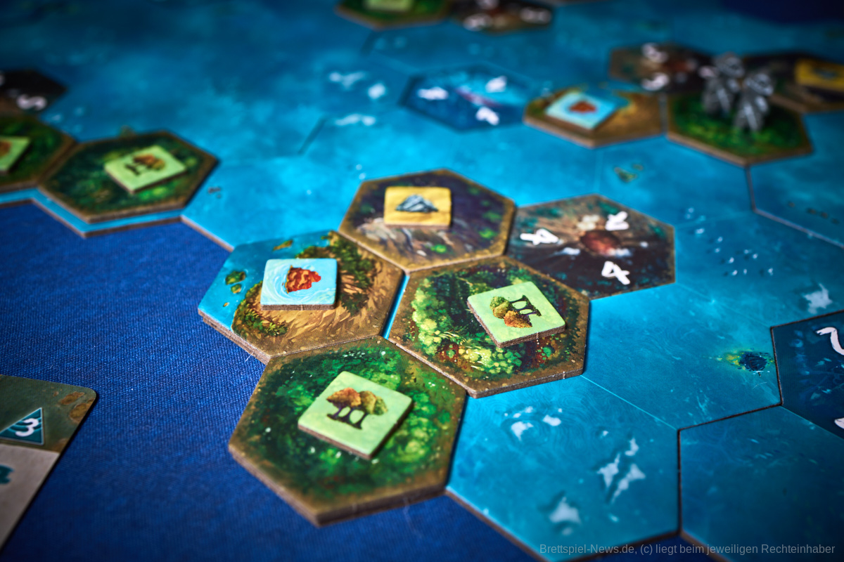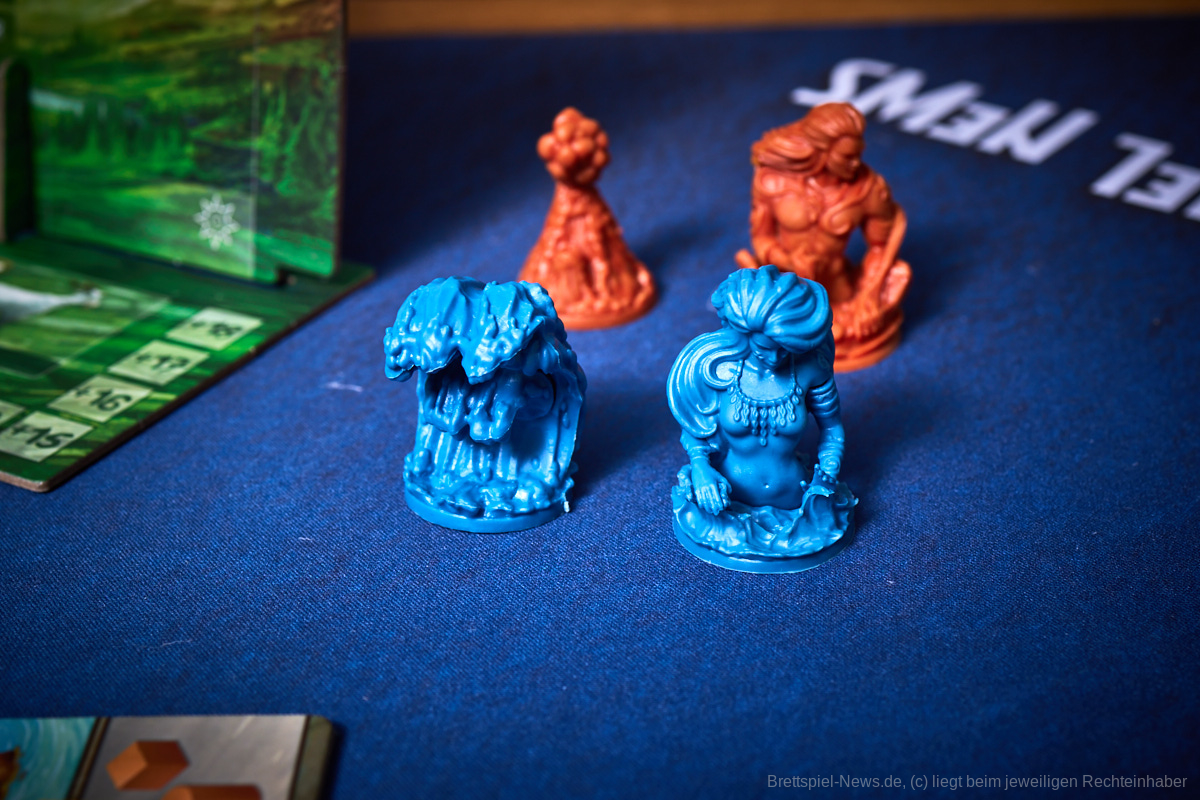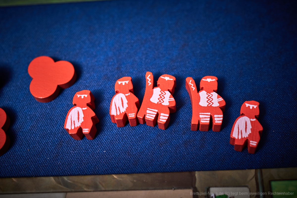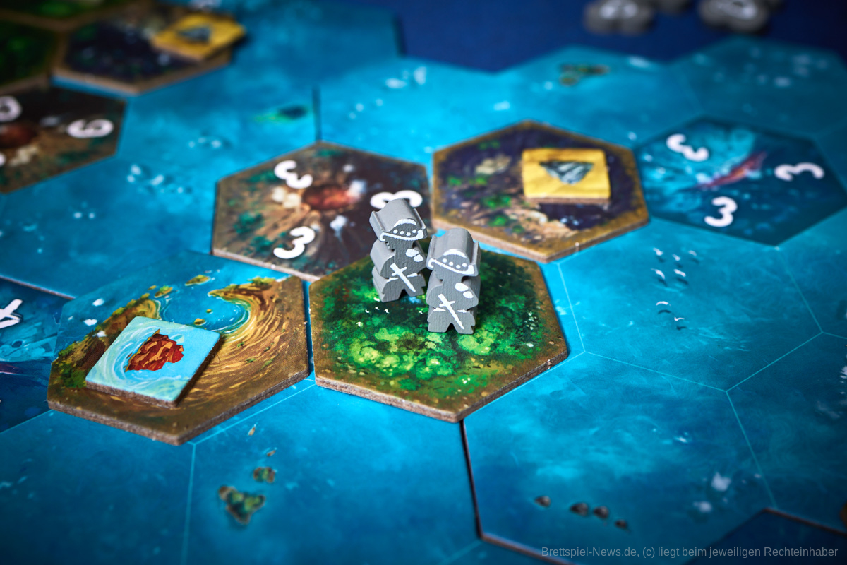 Besonders gefallen hat uns die Planbarkeit des Spielablaufes. Egal ob es die Katastrophen oder die Konquistadoren sind, alle wissen zu Beginn der Runde, was sie erwarten wird. Nur wenn sie in der Vorrunde nicht genug geplant haben kann es passieren, dass die Naturkatastrophen nicht bekanntgegeben werden, aber dennoch wissen alle, dass sie zumindest den Zorn der Götter niedrig halten sollten, um nicht zu riskieren, dass mit einem Mal das halbe Spielfeld untergeht. Genau das würde ich als Alleinstellungsmerkmal von „Tindaya“ bezeichnen. Die Spielgruppe muss sich absprechen, bzw. sich durchdacht gegenseitig im Weg stehen, um den eigenen Plan zu verwirklichen. Auch die Möglichkeit, dass sich das Spielfeld durch Vulkane oder Tsunamis dauerhaft verändert, kann damit in die eigene Planung mit eingebaut und nutzbar gemacht werden.