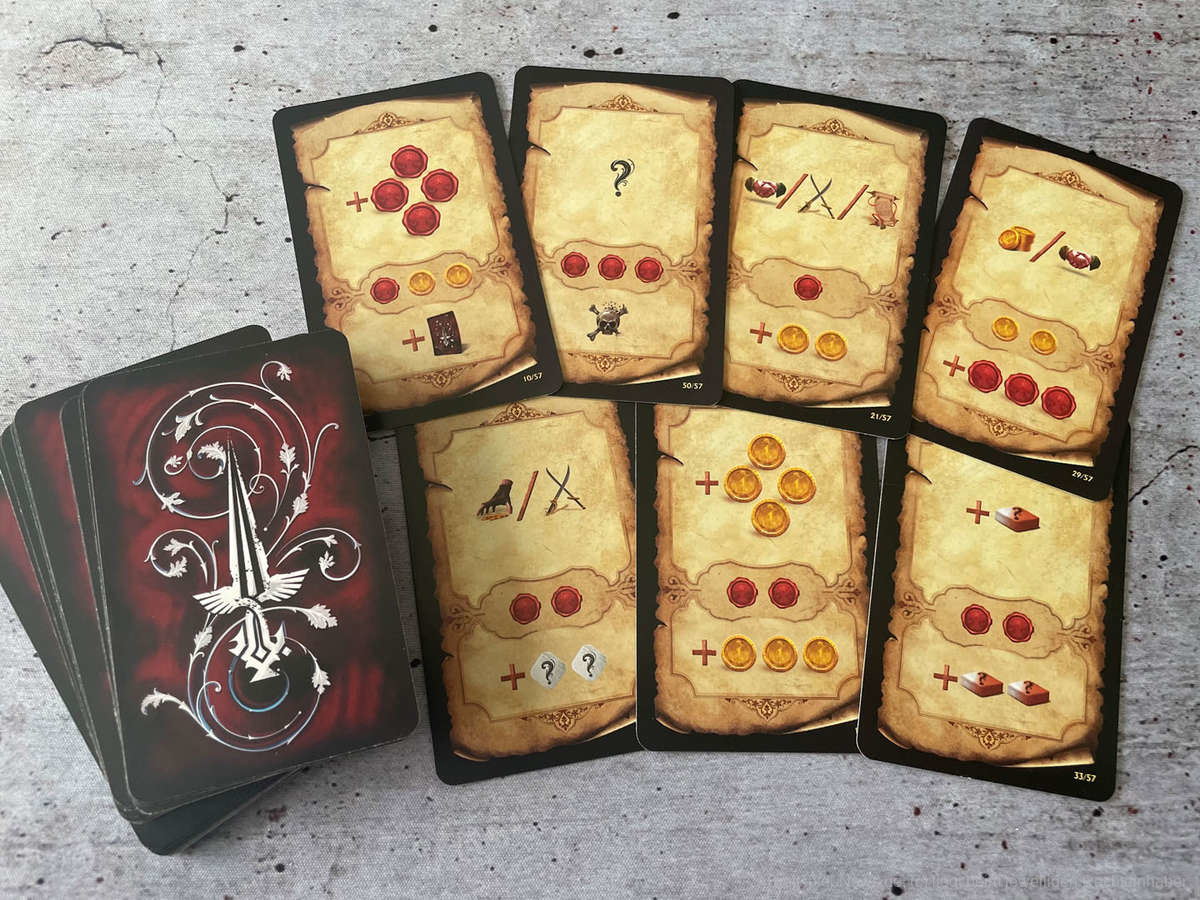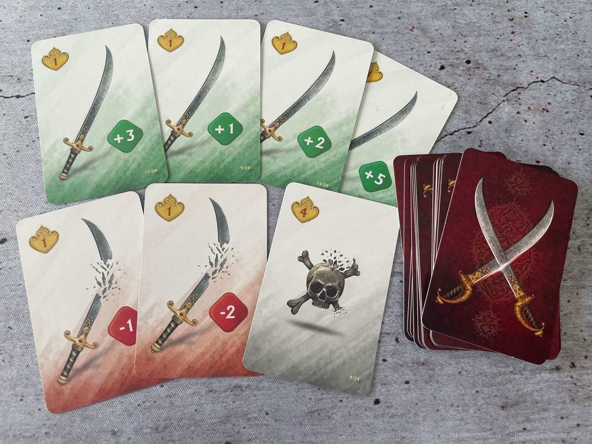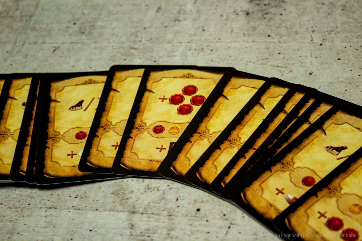 Als besonders glückslastig haben alle Mitspielenden außerdem die Mechanik des Kampfes empfunden. Logischerweise sollte man keinen Kampf anzetteln, wenn nicht mindestens ein Schwert im Vorrat liegt und genügend Kampfstärke gesammelt wurde, um dem schwächeren Gegner etwas voraus zu haben. Diese Logik wird dann beim Kartenziehen komplett durch das Glück ausgehebelt, denn auch ein schwacher Gegner kann die hohen Pluswerte ziehen und die stärkere Fraktion Karten mit Minuswerten und Totenköpfen. Die Konsequenzen einer Kapitulation unterscheidet sich nicht viel vom Verlieren und wurde daher bei uns nie als Option gewählt. Hier hätte eine strategischere Kampfmechanik dem Spiel mehr Spannung und so das gewisse Etwas verleihen können, um sich als das neue "Must-have-Teamspiel“ auszuzeichnen.