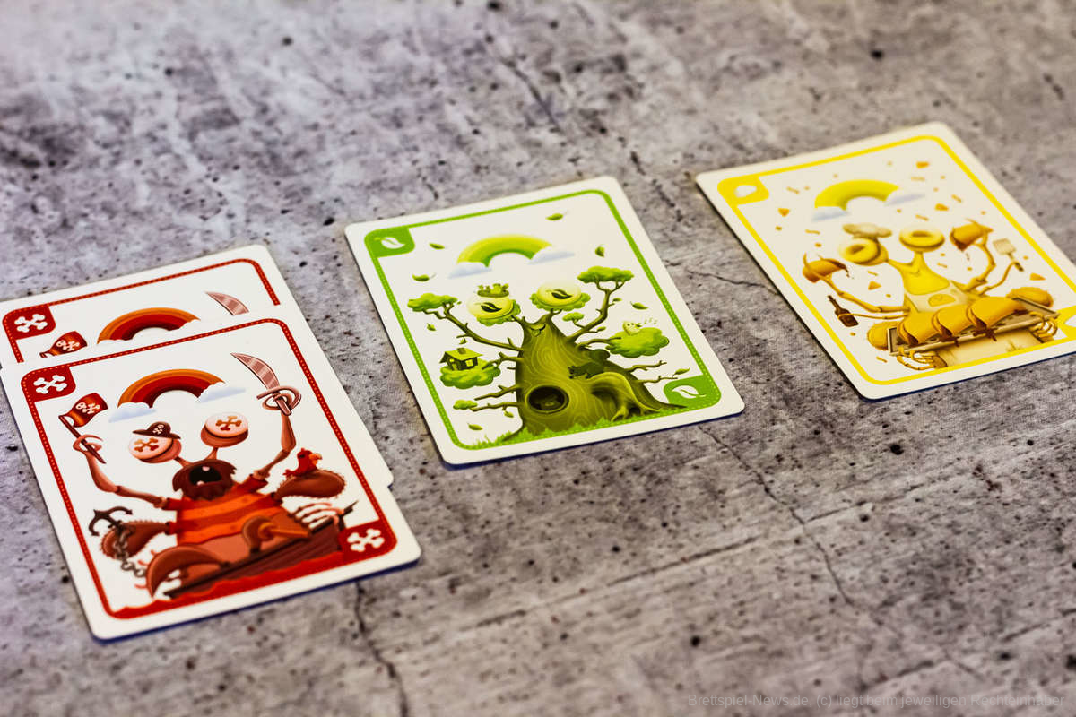 Schaffen wir zu stehlen, werden wir unter Umständen reich belohnt! Wir ziehen alle Karten einer Farbe aus der Auslage einer mitspielenden Person. Das kann den ein oder anderen Fluch zur Folge haben. Und womit? Mit Recht! Das große ABER darf hier aber nicht fehlen, denn sollte eine Karte einer Farbe daherkommen, die die Person nicht hat, haben wir ihr geholfen, dem Sieg näher zu kommen.