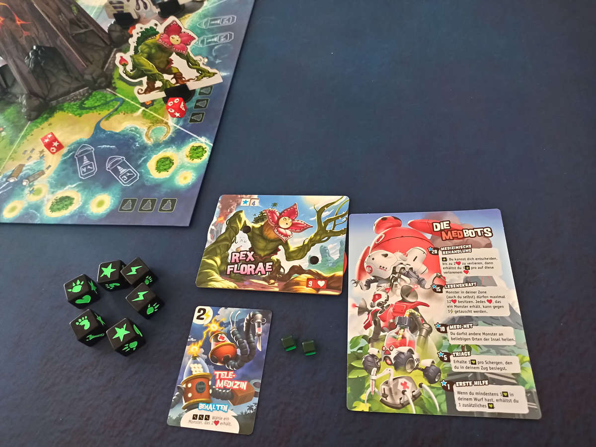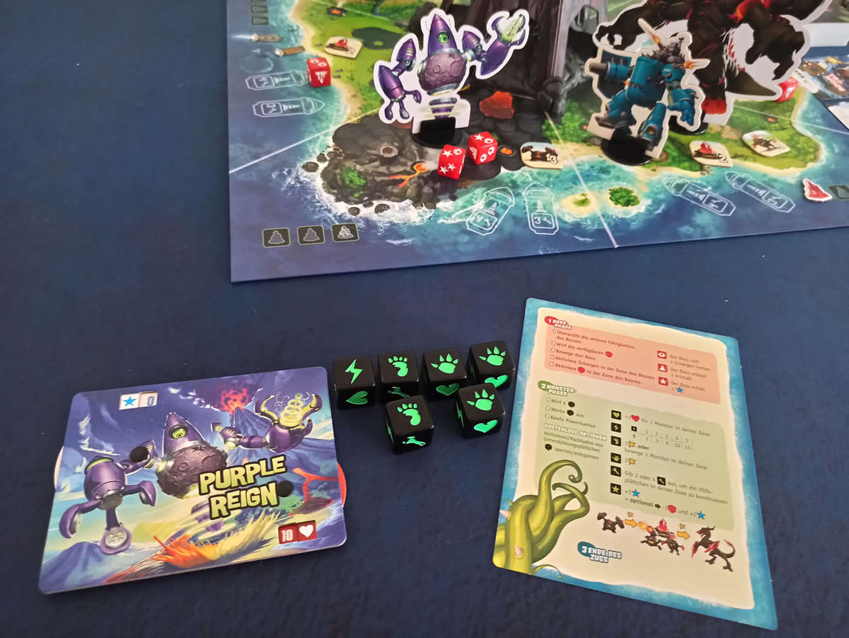 Es gibt insgesamt drei Boss-Monster mit je zwei Schwierigkeitsgraden. Hier kann ganz nach Belieben gewählt werden, ob es eine eher einfache oder eher eine schwierigere Partie werden soll. Auch die sechs verfügbaren Verbündeten bringen Abwechslung ins Spiel. Glück spielt bei so viel Würfeln natürlich eine Rolle, aber da das ganze Spielkonzept hierauf aufbaut, gehört es, ähnlich wie beim Original, einfach dazu. Wer das nicht mag, wird bei den ganzen „King of“-Spielen nicht glücklich werden.