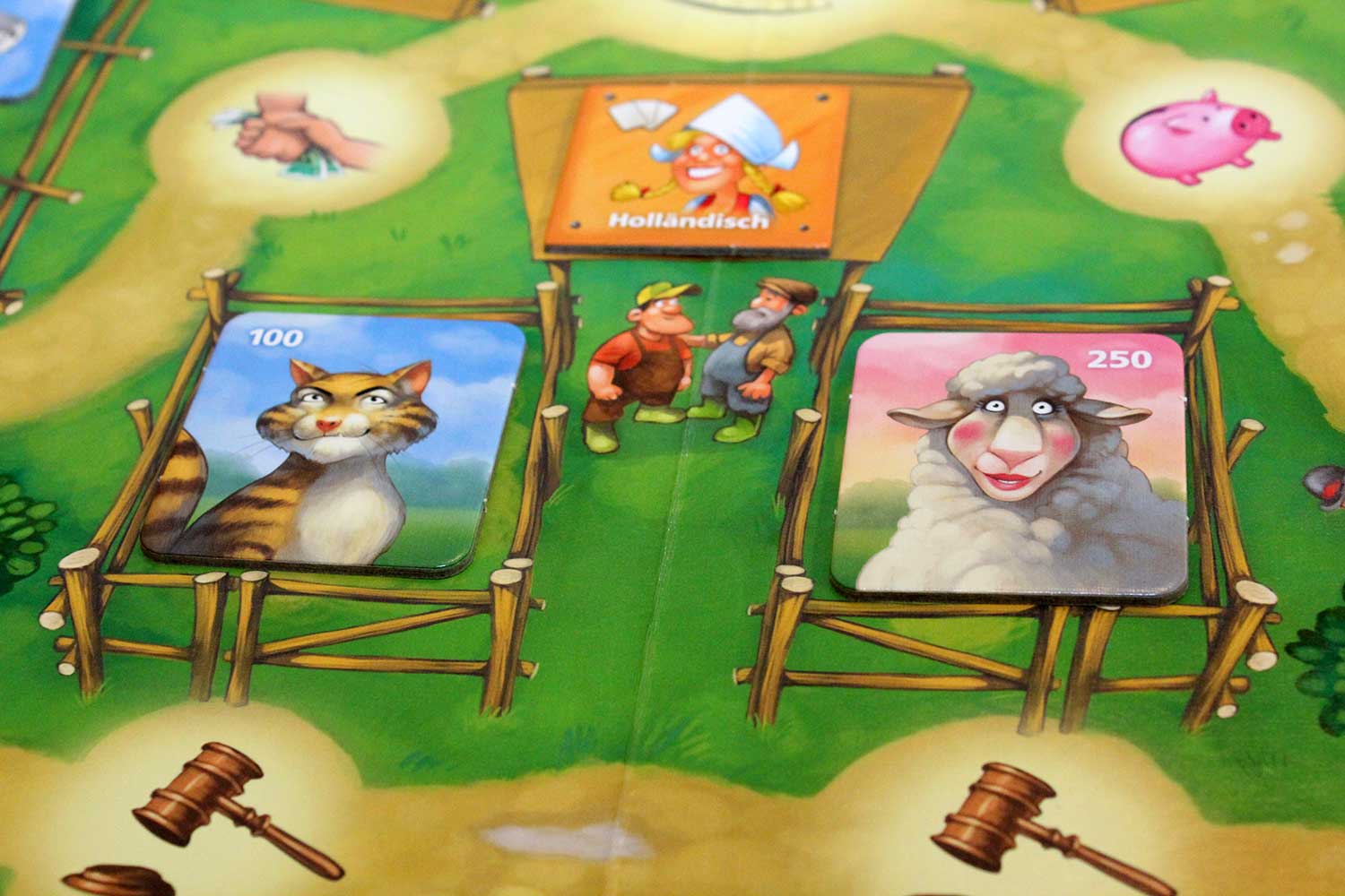 Derjenige, der das Tier ersteigert hat platziert es auf seiner Weide des Bauernhofs und wenn er sogar ein Pärchen somit auf der Weide hat kann er dieses in den Stall verschieben. Falls niemand bietet erhält der Auktionator das Tier kostenlos. Und wenn man nicht passend bezahlen kann, sollte man immer beachten, dass es kein Geld zurück gibt. Sobald man auf das Sparschwein zieht, darf man sich falls Geldscheine auf dem Vorratsfeld des Sparschweins liegen, die obersten 5 Geldscheine nehmen.