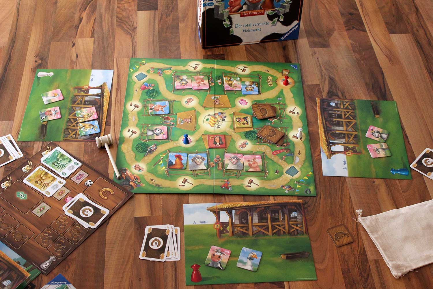 Es gibt zwei Spielvarianten. Einmal die Anfänger Variante „Viehmarkt“, auf diese werde ich gleich näher eingehen und die Kennervariante der „Rummelplatz“.Diese Variante ist taktischer und facettenreicher, da mehr Spielelemente hinzukommen.