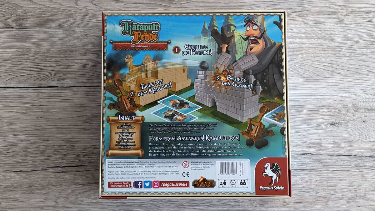 In einem solchen Duellspiel mit „echten“ Katapulten kommt dem Material natürlich eine enorme Bedeutung zu. Umso erfreulicher ist es, hier eine großartige Qualität vorzufinden. Egal ob Katapulte, Kugeln, Mauerteile oder Figuren: Auch bei andauerndem Bespielen konnten wir keine Verschleißerscheinungen feststellen.
