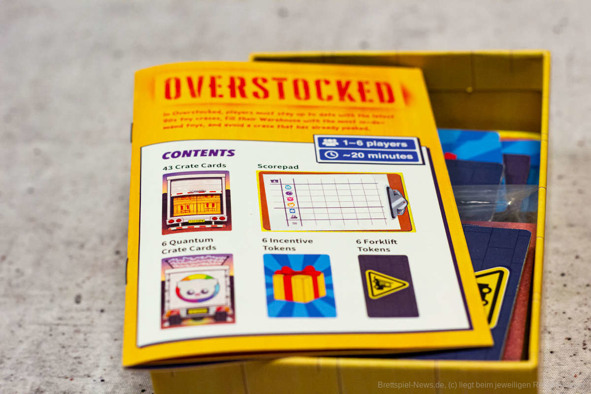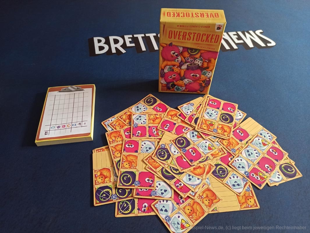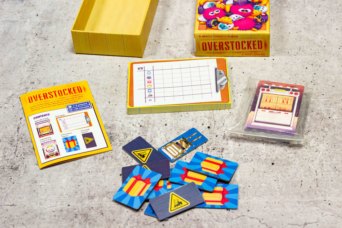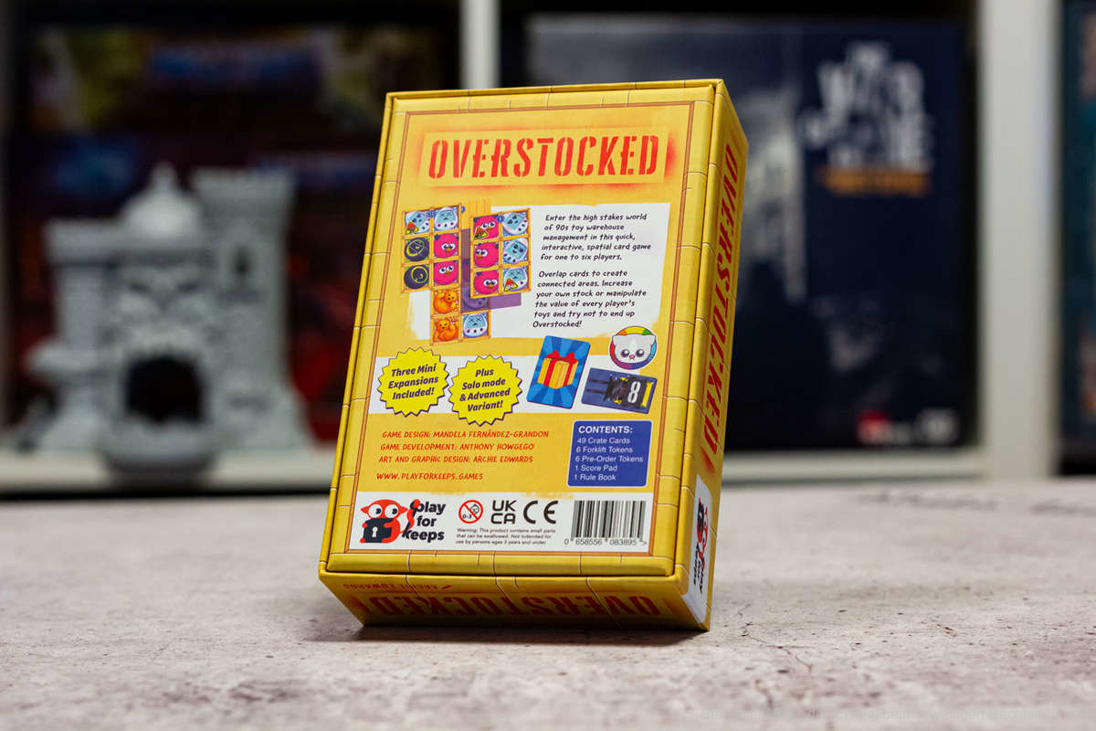 „Overstocked“ ist ein kleiner Geheimtipp und eignet sich wunderbar als Eröffnungsspiel oder Absacker für einen Spielabend und ist dabei auch für Vielspieler geeignet. Es ist nur leider schwierig zu erhalten, da der Kickstarter mit 447 Unterstützern nicht sonderlich erfolgreich war.