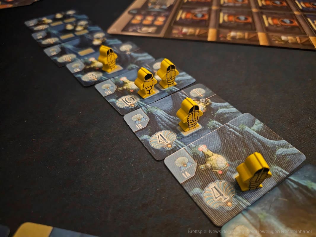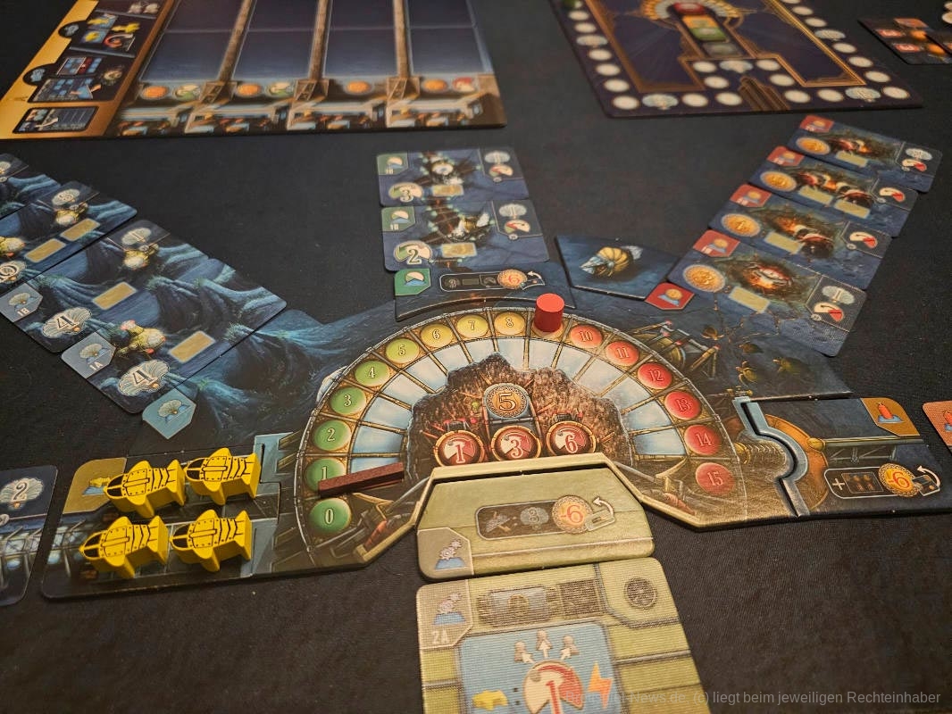 “New Eden“ hat sich viele Mechaniken auf den Teller gehäuft, weiß mit ihnen aber umzugehen. Der Basenbau benötigt viel durchdachtes Platzieren der verschiedenen Modul-Karten und die Auktionsphase braucht einen geübten Blick auf die eigene und gegnerische Kuppeln. Kleine Fehlentscheidungen können weitreichende Konsequenzen haben, wenn die anderen Personen die Situationen für sich zu Nutzen wissen. Wie bei vielen Spielen mit Engine-Building-Mechanik gilt es auferfahrene Personen aufzupassen, dass sie sich mit verschiedenen „Forschungskarten“ nicht zu viele Boni abstauben und den anderen in der Endwertung nicht mit den Siegpunkten wegzurennen (was mir natürlich nicht passiert ist und ich nicht mit beinahe der doppelten Menge an Siegpunkten besiegt wurde).