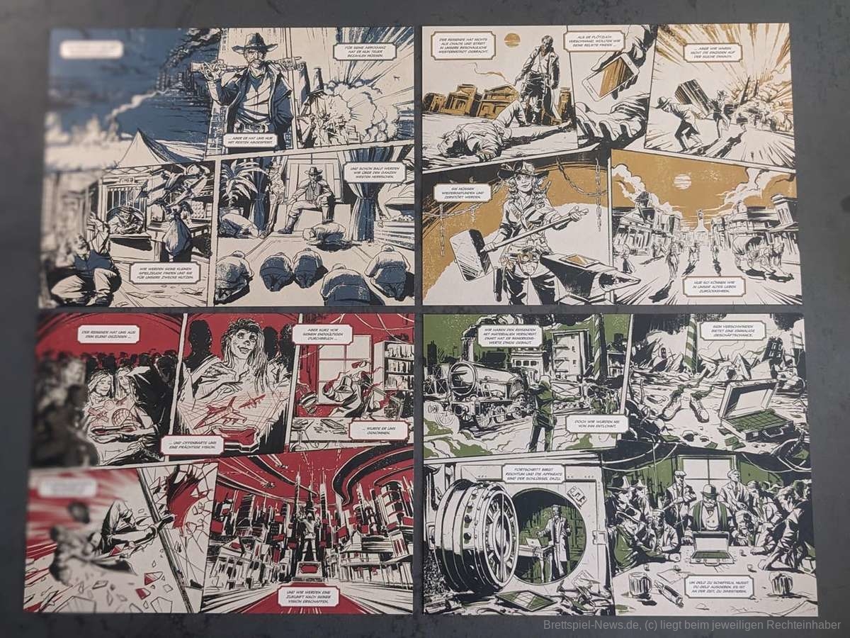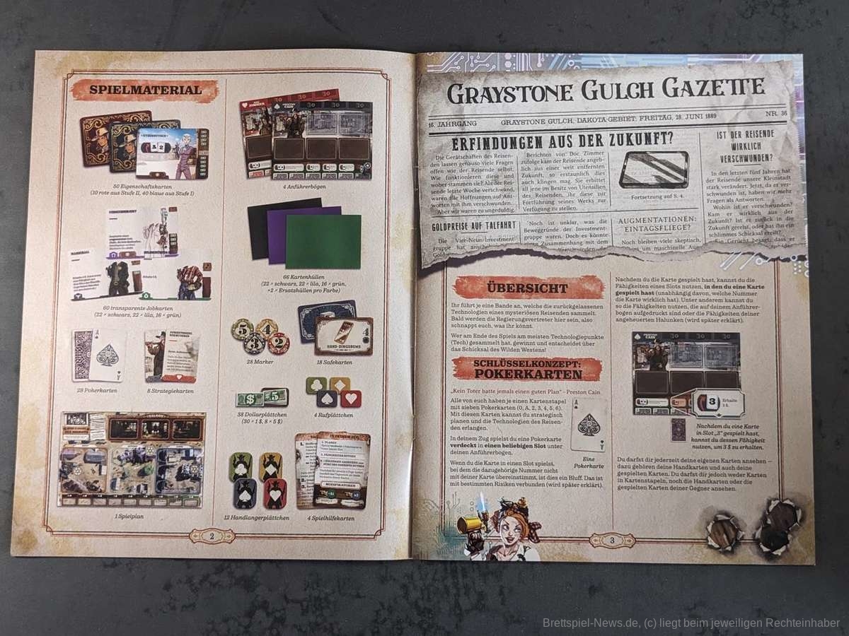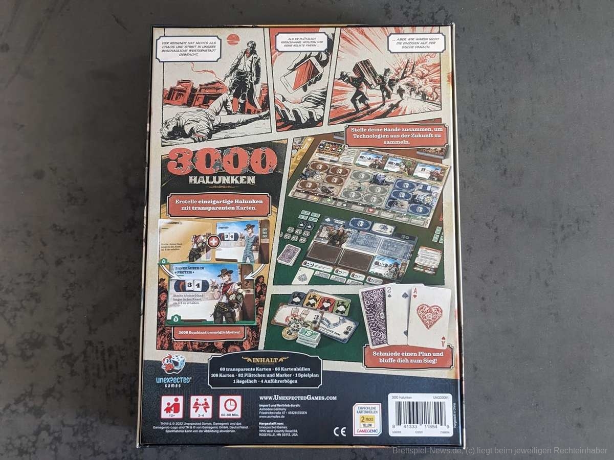Zeitreisen und der Wilde Westen, eine vielversprechende Kombination. „3000 Halunken“ ist optisch ein Hingucker, sowohl die Spielschachtel als auch das Spielmaterial sind liebevoll gestaltet. Besonders gelungen finden wir das Artwork der Karten, die zu teilweise lustigen Illustrationen durch die verschiedenen Eigenschaften und Jobs der Halunken führen. In Erinnerung sind uns lustige Kombinationen wie der korrupte Hund oder die verführerische Priesterin geblieben. Der used-look der Pokerkarten hat zumindest zu Beginn noch den Eindruck vermittelt, tatsächlich in einem alten Saloon zu sitzen und auch die Anleitung konnte bei uns mit ihrer übersichtlichen Gestaltung und vielen Beispielen punkten.