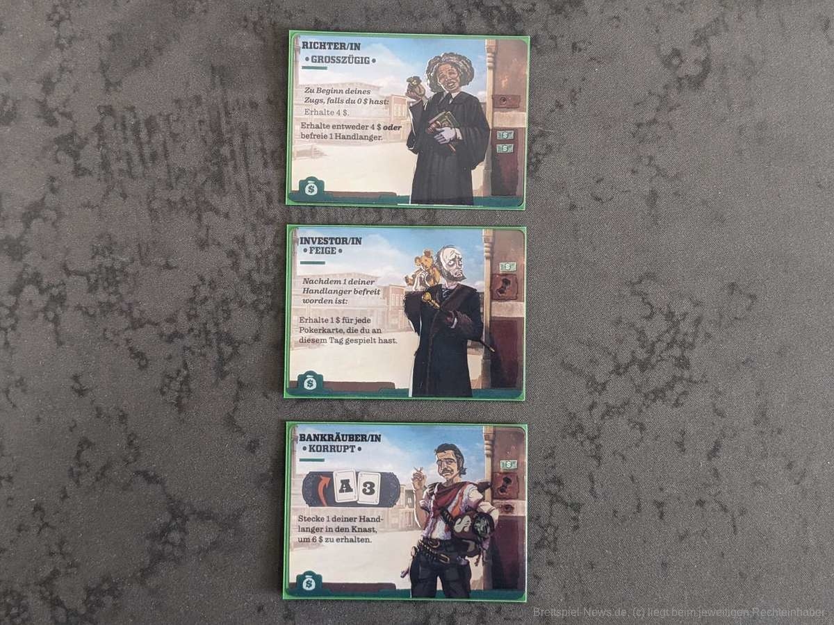 Ebenfalls vielversprechend klingt die spielmechanische Grundidee von „3000 Halunken“. Da die Job- und Eigenschaftskarten 3000 verschiedene Kombinationsmöglichkeiten bieten, ist diesbezüglich keine Partie wie die vorherige. Auch der Bluffmechanismus klingt spannend und so scheint es, dass das Ausspielen einer Karte in einen nicht passenden Kartenslot ein großes Risiko darstellt und es weitreichende Konsequenzen nach sich zieht, wenn der eigene Bluff von den Mitspielenden erkannt wird. Spannung scheint also vorprogrammiert.
