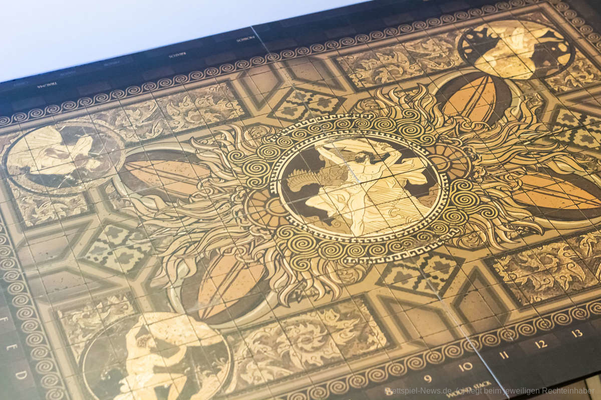 Die Welt von „Aeon Trespass: Odyssey“ ist absolut einmalig. Ich persönlich hätte mir zwar ein Brettspiel in der nordischen Mythologie gewünscht, aber die griechische ist fast ebenso interessant. Es kommt häufig vor, dass bekannte Persönlichkeiten oder Orte der Sagen, Mythen und Legenden auftreten. Obwohl die Welt angelehnt ist an die griechische Mythologie, haben die Entwickler zusätzlich viel eigene Fantasie einfließen lassen.