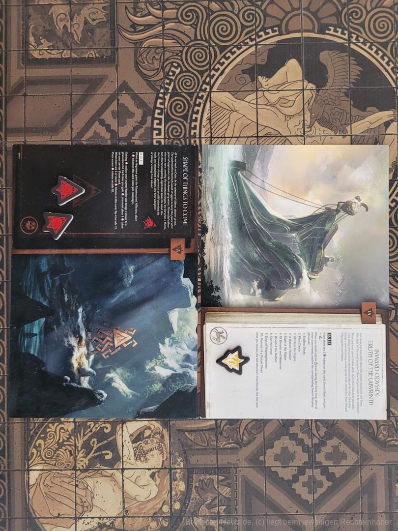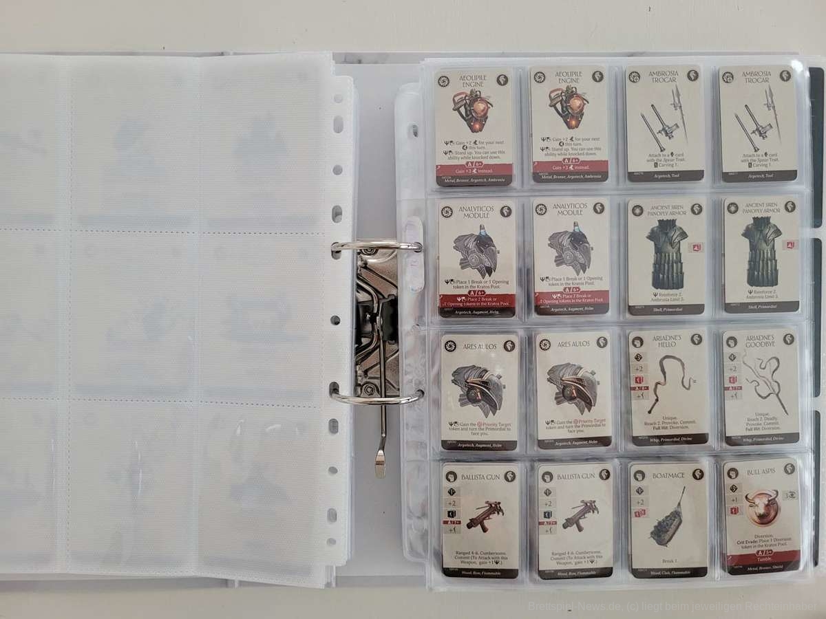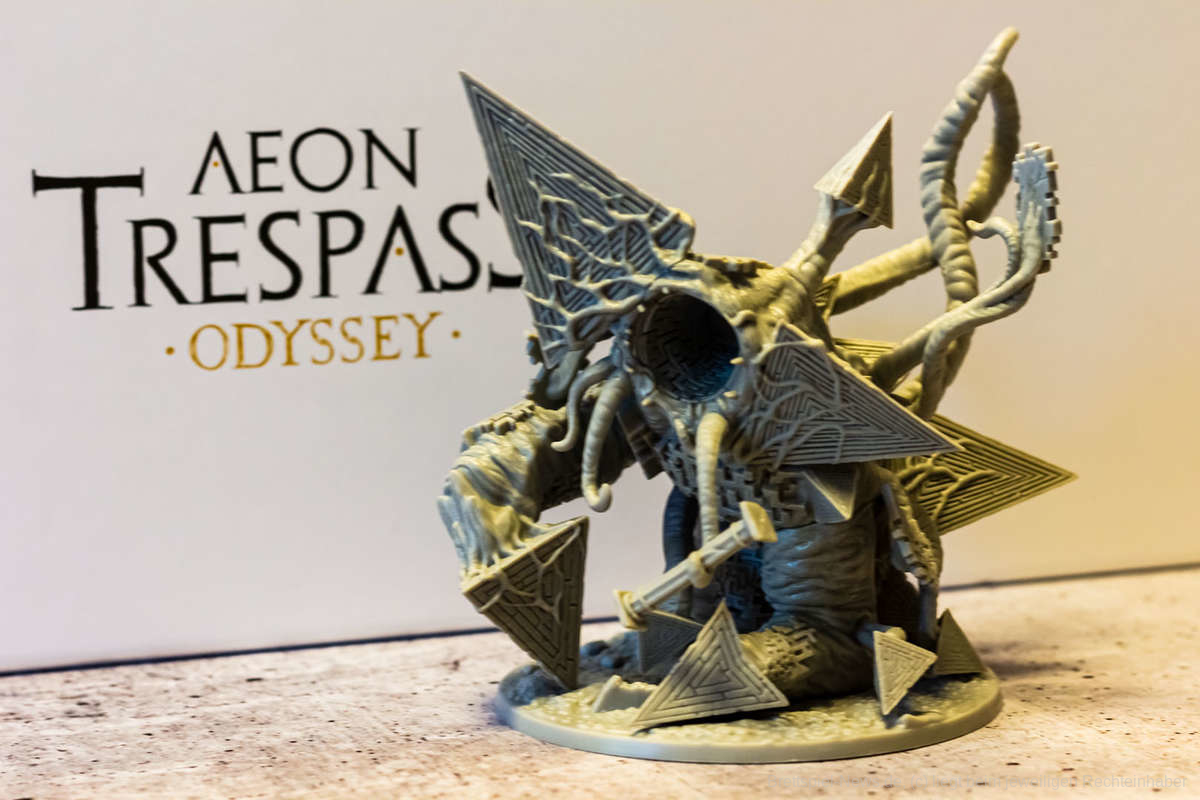 Abschließend muss ich sagen, dass mich „Aeon Trespass: Odyssey“ wahnsinnig in seinen Bann gezogen hat. Seitdem das Spiel hier angekommen ist, liegt es auf meinem Tisch, was den Tisch komplett unbrauchbar macht, denn „Aeon Trespass: Odyssey nimmt diesen vollständig ein. Für mich ist es „Kingdom Death Monster“ ebenbürtig, da beide Spiele viele Stärken haben und unterschiedliche kleinere Schwächen aufweisen. Ich jedenfalls bin absolut begeistert und habe das Spiel mittlerweile mit Sleeves, bemalten Figuren und einem eigenen Ringbuch, in dem ich die Karten aufbewahren kann, aufgewertet. Interessierten sollte klar sein, dass das Spiel sehr glückslastig ist. Eben ein klassischer Ameritrash-Titel mit einer wunderbaren Geschichte. Für mich ist es eines meiner absoluten Lieblingsspiele geworden, allerdings bin ich mir sicher, dass dieses Spiel nicht für alle geeignet ist.