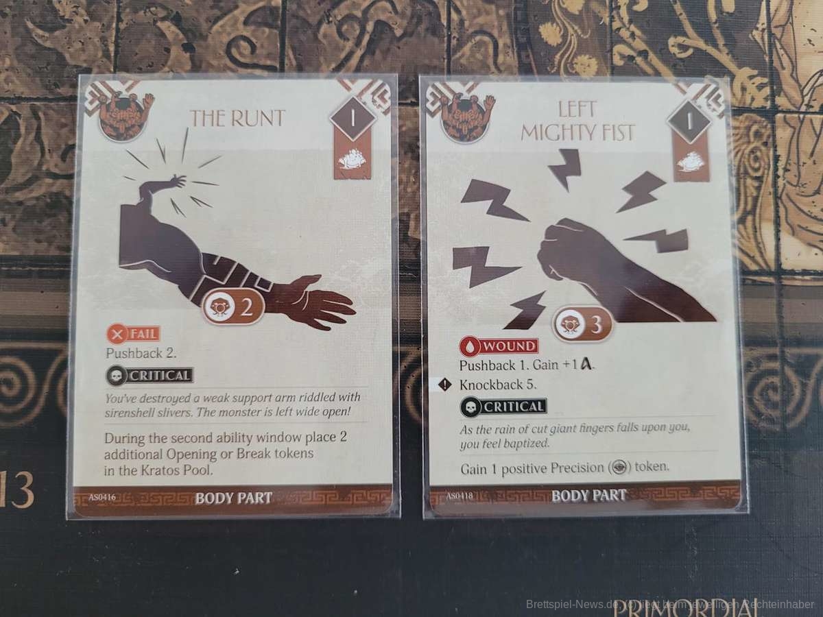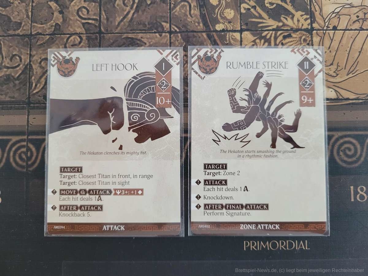 Die Kampfmechanik ist an den Urvater der Boss-Battler angelehn: „Kingdom Death Monster“. Trotzdem geht das Spiel seinen eigenen Weg. Das Triskelion zeigt die Wut, das Schicksal und die Gefahr an, welche den Kampf dynamisch machen. Die Titanen und die Primordials werden im Laufe des Kampfes immer stärker und helfen einander. So können mächtige Kombos entstehen oder sogar die alten Götter erweckt werden. Einige Primordials können von den Titanen erklommen werden, sodass der Kampf auf den Primordials selbst weitergeht.