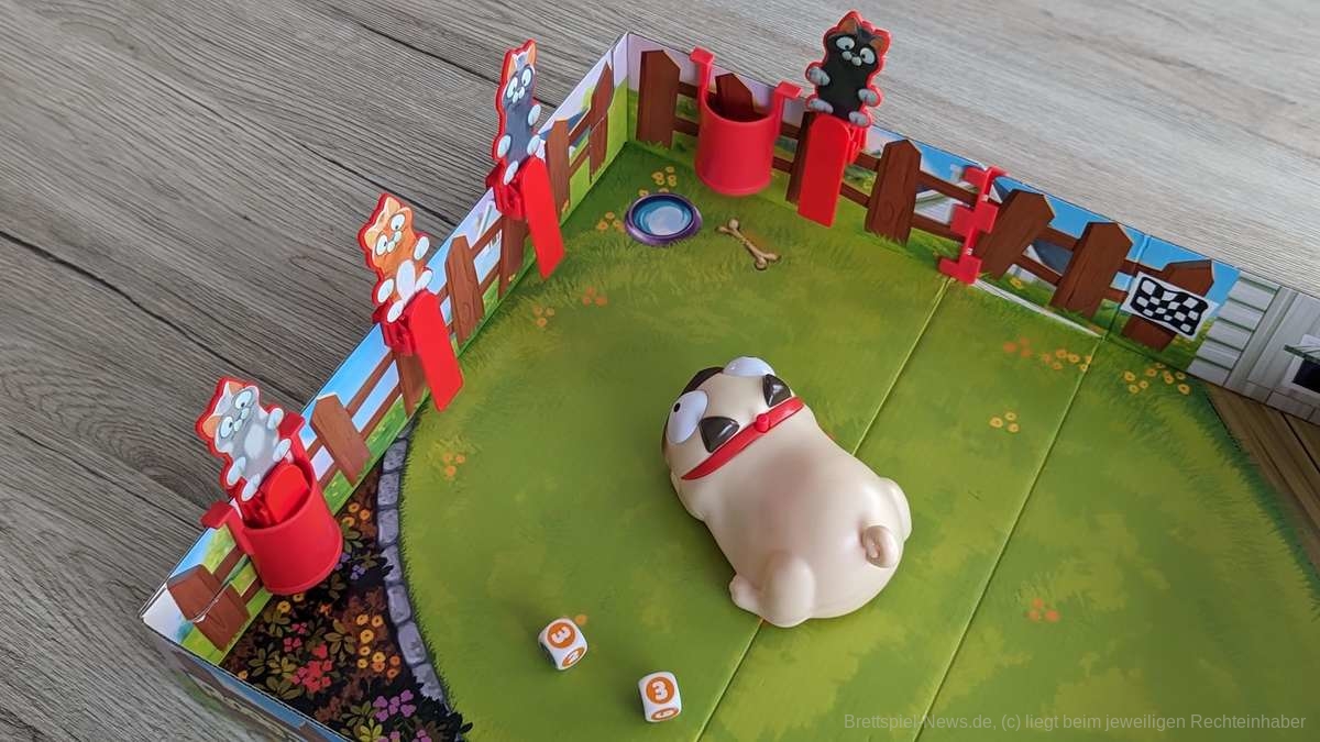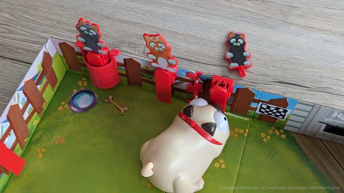 Einzig das Auslösen des Hundes bereitete den jüngsten Kindern gelegentlich kleine Probleme. Hier hätte ich mir etwas mehr Leichtgängigkeit gewünscht, was jedoch nur ein kleiner Kritikpunkt ist. Es ist sehr schwer, das breite Grinsen und die kindliche Schadenfreude zu beschreiben, wenn Papas Katze mal wieder in hohem Bogen über den Tisch fliegt.