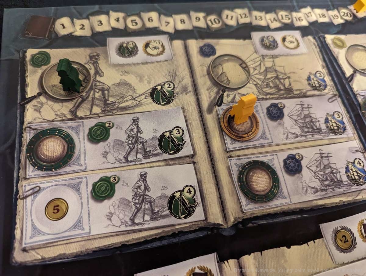 Es gibt aber auch Schwächen. Die Übersichtlichkeit ist nicht perfekt. Es gibt viele Aktionsmöglichkeiten und entsprechend viele Plätze, wo die Meeple eingesetzt werden können. Teilweise kam es vor, dass Aktionsmöglichkeiten übersehen wurden. Auf den Inseln gab es vereinzelt Verwirrung, in welche Richtung der Weg nun weiterführt. Dies hätte etwas deutlicher gestaltet sein können.