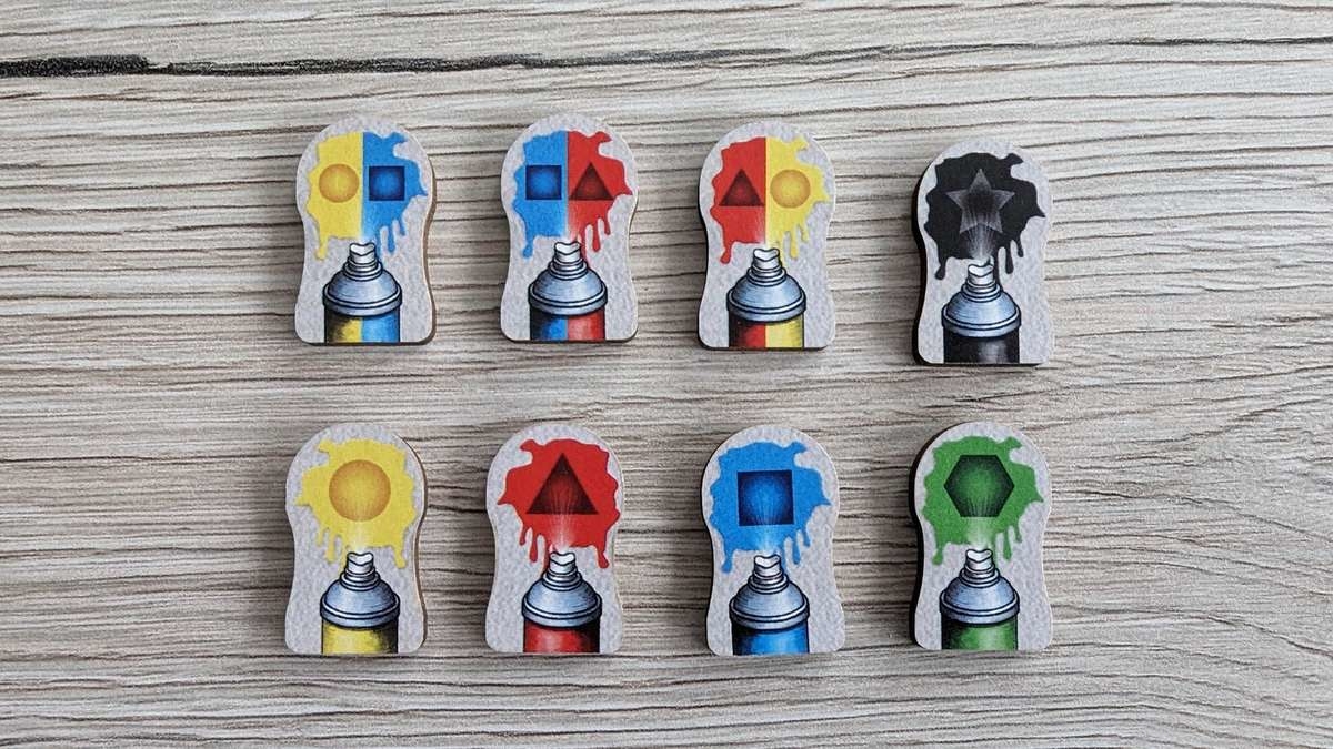 In „Graffiti“ versuchen alle Personen am Tisch, Spraydosen in verschiedenen Farben und Genehmigungen für bestimmte Bereiche des Tunnels zu sammeln. Damit können die Graffitis an den Wänden des Tunnels bearbeitet und im besten Fall abgeschlossen werden.