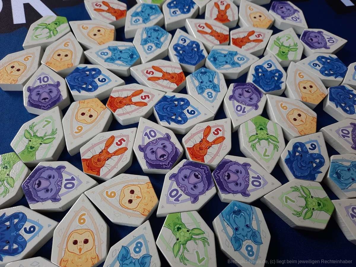 Das Spiel ist sehr schnell erklärt und bietet schnell Spaß, auch nach mehreren Partien. Es funktioniert auch zu zweit super. Einzig der Aufbau scheint mir ein wenig behäbig. Die Anleitung weist an, je 15 Tiersteine zu einem Turm zu stapeln, der ein wenig wie eine Blüte aussieht. Das ist einfach zu aufwendig für die kurze Spieldauer. Wir haben einfach 15 Steine abgezählt und zu einem Haufen aufgestapelt. Das funktioniert auch und ist weit weniger aufwendig.