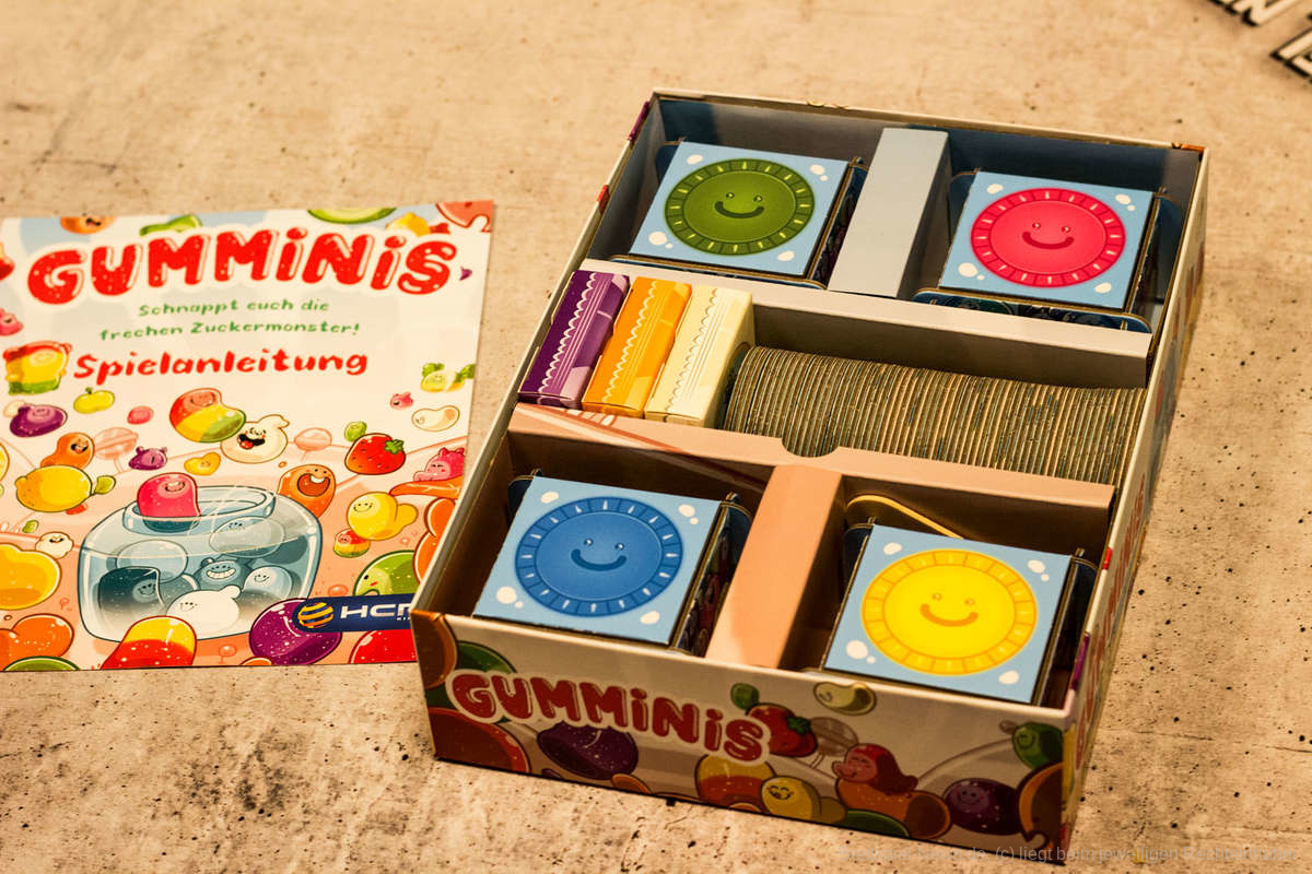 „Gumminis“ schafft es, einen kindgerechten Sammel-Mechanismus für Ressourcen mit einem interessanten Deck-Building (oder besser „Zuckerdosen“-Building) zu koppeln. Die Möglichkeiten sind für alle Kinder sofort überschaubar.